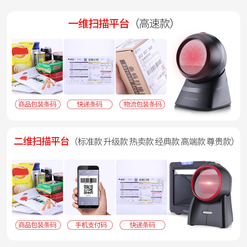 Виктория двухмерная платформа сканирования кода супермаркет кассовый реестр выделенный лазерный штрих -кодовый сканирующий штрих -код сканирования сканирования кода платежного устройства Шалочка WeChat Alipay Alipay Collection