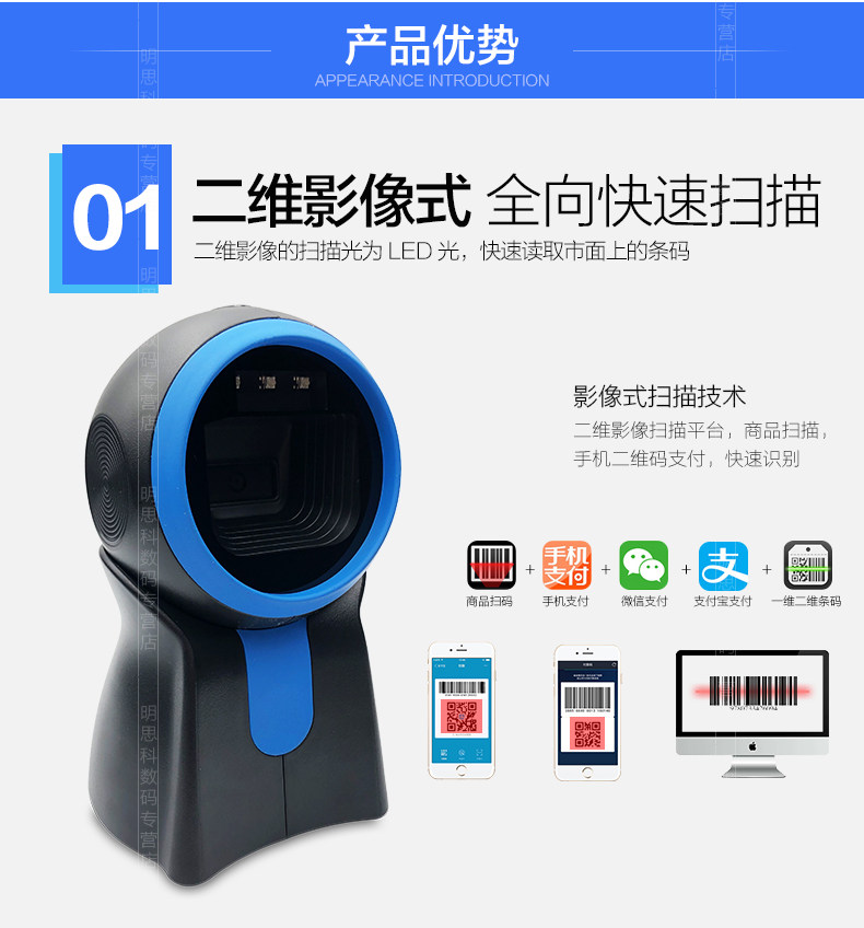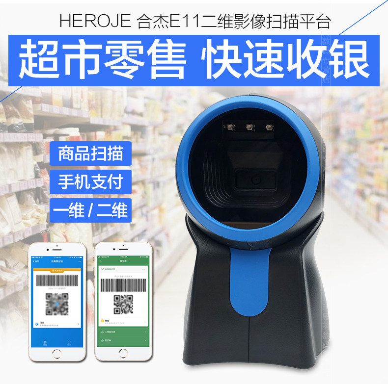 Hejie E11 QR -код сканирующей платформу супермаркета кассовый реестр Специальное сканирование штрих -кода, кабельный код WeChat Alipay Платежный ящик и сканер платежей
