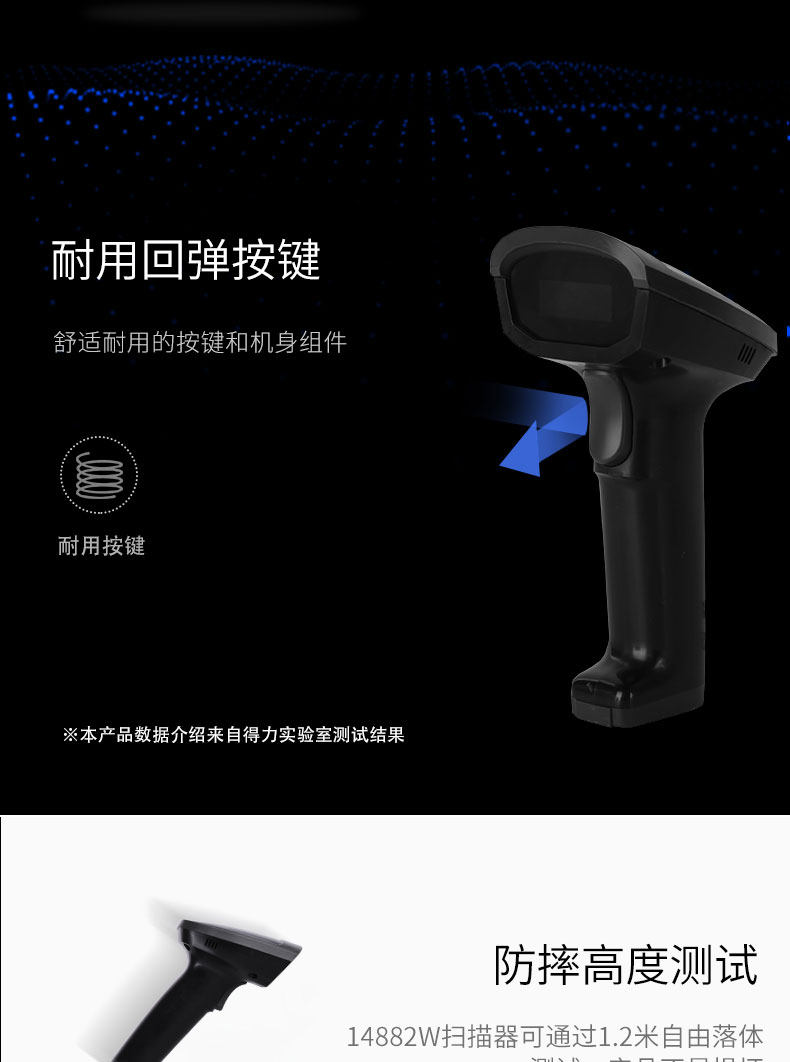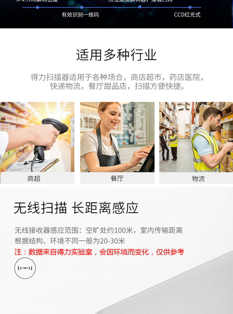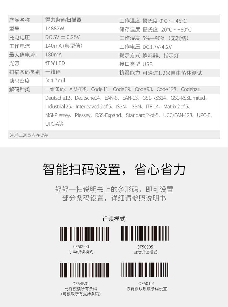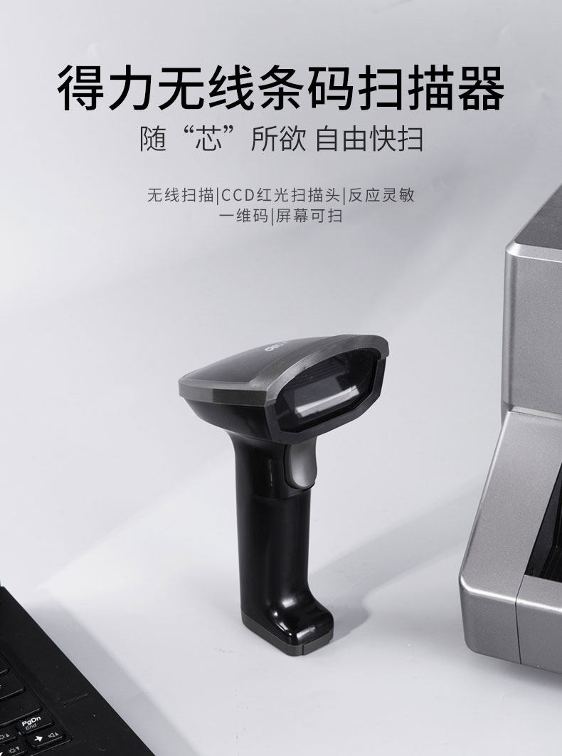 Deli 14882W Беспроводной красный лазерный лазерный сканирующий пистолет экран экрана телефона Alipay WeChat Dynamic Scanning Scanning Scanning Scanning Scaner Scanner Scanner Courier