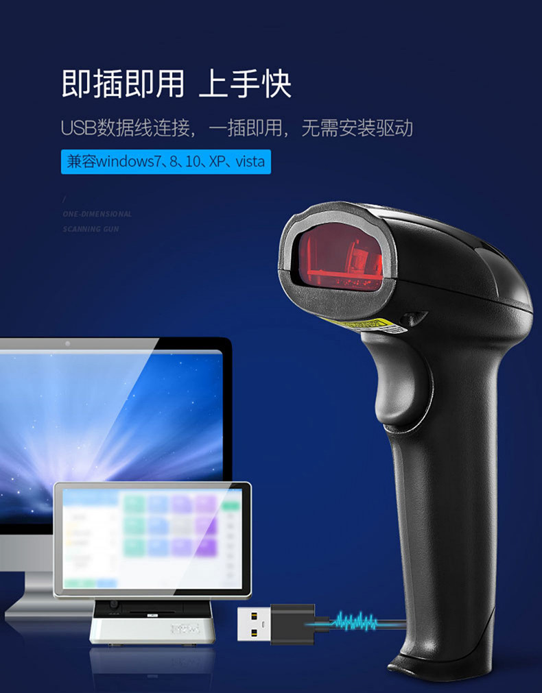 Huashang Optoelectronics лазерный сканирующий пистолет проводной код Express Clear Code Speed Gun Special Mobile Paying WeChat USB -код код сканирования кода