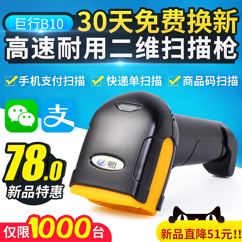巨行 B10 Wired QR -код сканирующий пистолет мобильный телефон WeChat Alipay Supermarket Supermarket Cash Register Сканирующее пистолет Фермеры Кодированный сканирование сканирования сканирования код сбора кода платежного штрих -кода штрих -код