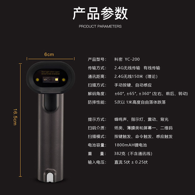 Kemi YC200 Сканирующее оружие беспроводной полосовой код сканирования код кода пистолет WeChat Alipay Scanter Coder Cashier Cassier Cassier в базу данных -out One -Dimensional два -мерный код проводной портатив