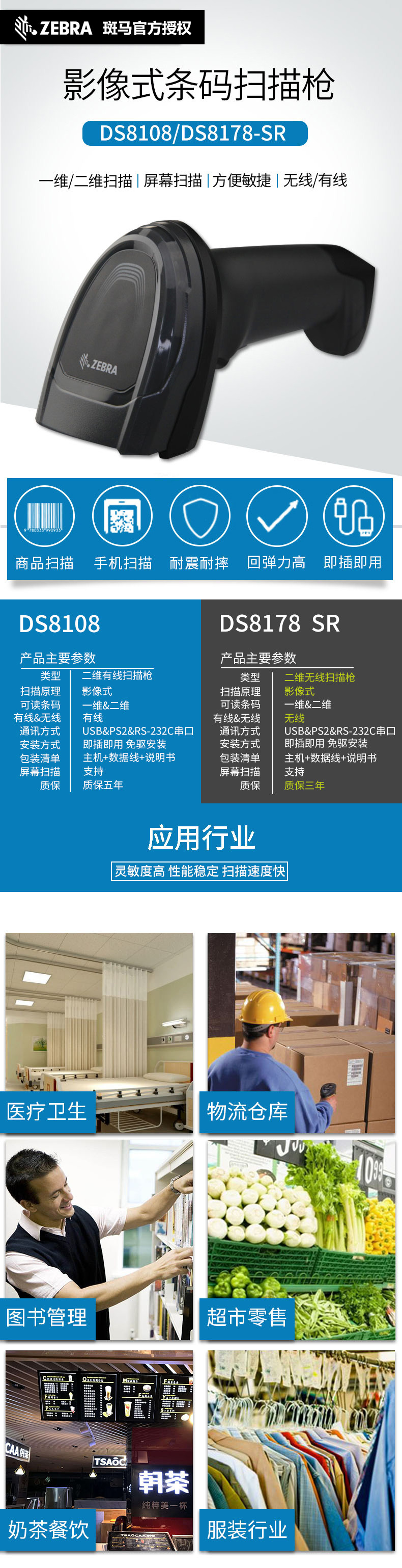 Символ зебры Zebra xunbao DS8108/8178SR промышленного Bluetooth Беспроводной QR -код сканирующий сканирование орудийного курьерного курьерного курьеры.
