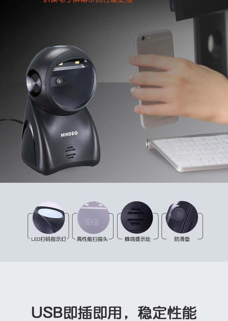 Mindeo MP725 MP8000 QR -код сканирование платформы торговых центров Supermarket Superience Store Pharmacy Медицинское страхование.