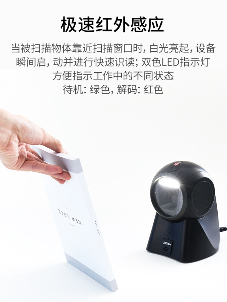 Платформа сканирования Deli 14960, QR-код, Alipay, WeChat, оплата, супермаркет, касса, высокоскоростной сканер штрих-кода