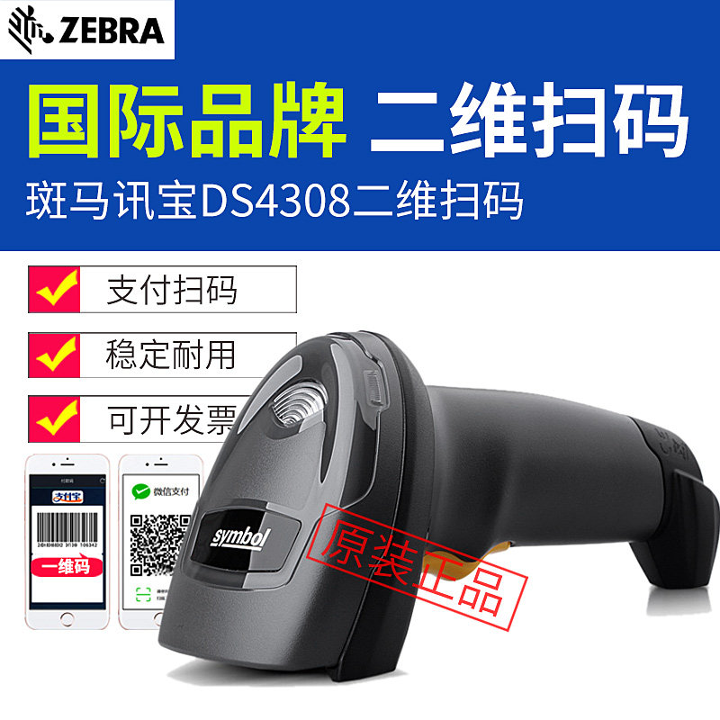 斑马 Символ Xunbao DS4308 Двухмерный сканирующий пистолет супермаркет кассир платеж DS1001 Express Special