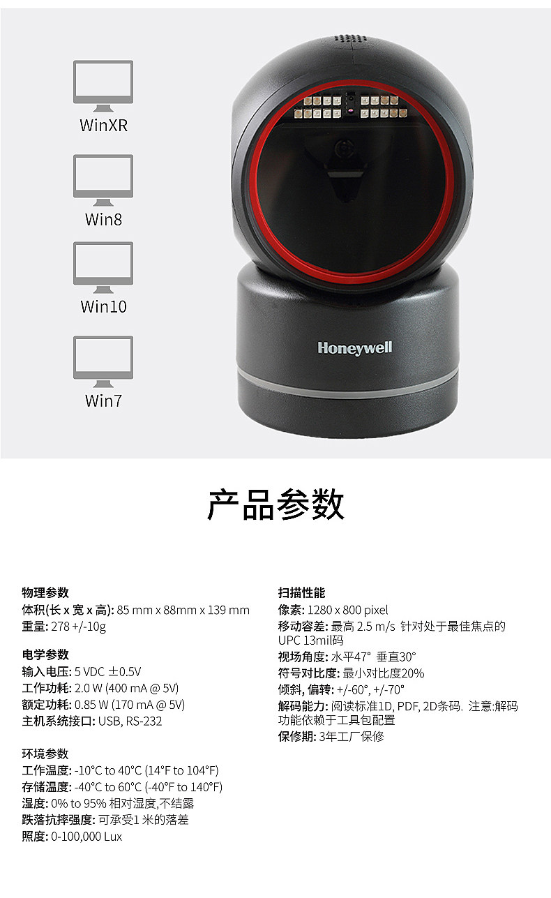 Honeywell HF680 QR -код сканирующая платформа супермаркета Commortity Mobile WeChat Alipay Cash Revistr