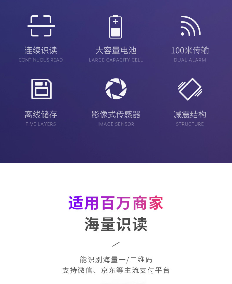 Deli 14950W Код код Code Gun QR -код беспроводной сканирующий сканирующий код оплаты оружия Специальный код супермаркета сканер кассира кассира сканер