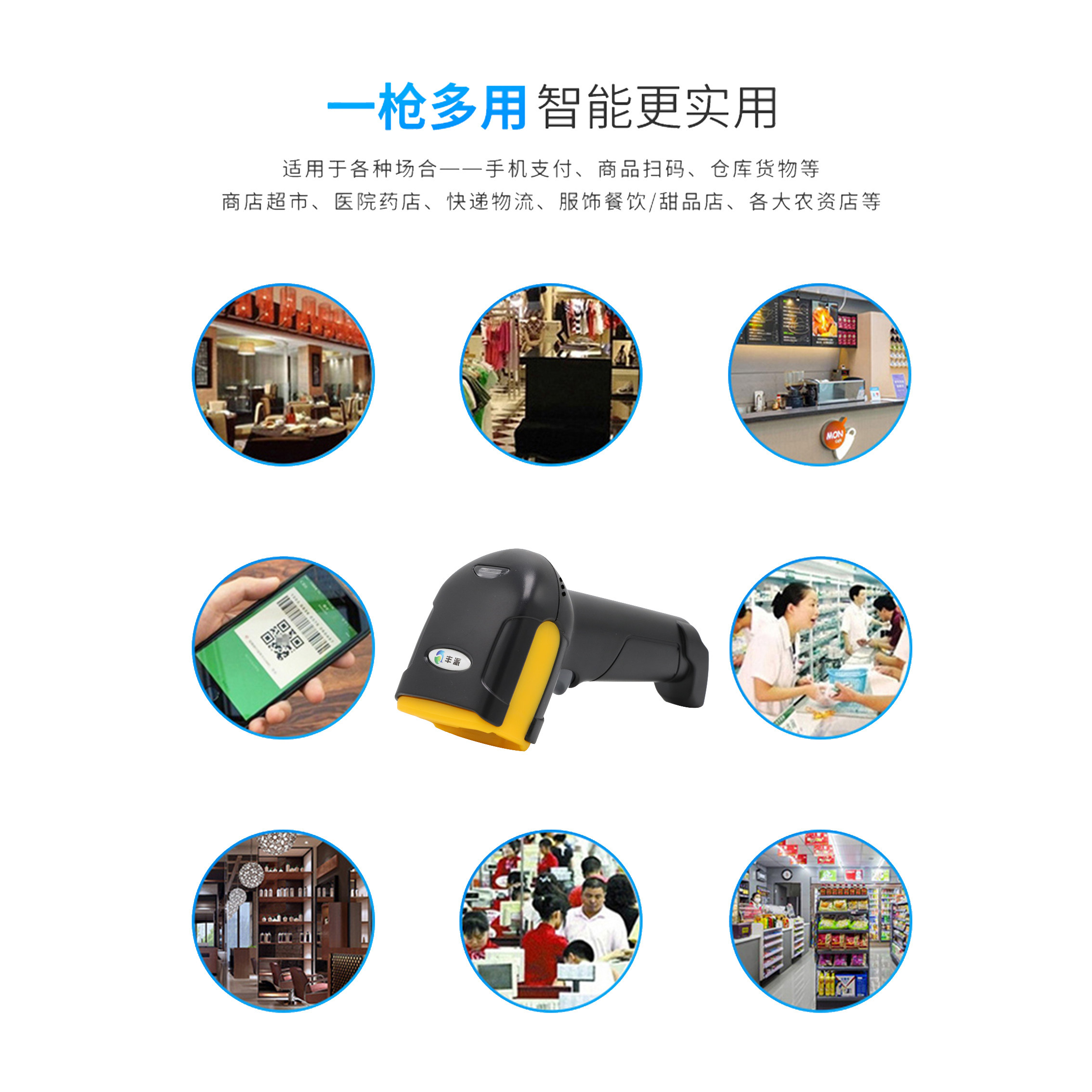 Сканирование кодовой сканирование сканирования сканирования пистолета QR Код Коллекция Коллекция платформы Серебряная супермаркет беспроводная ручка Сканер