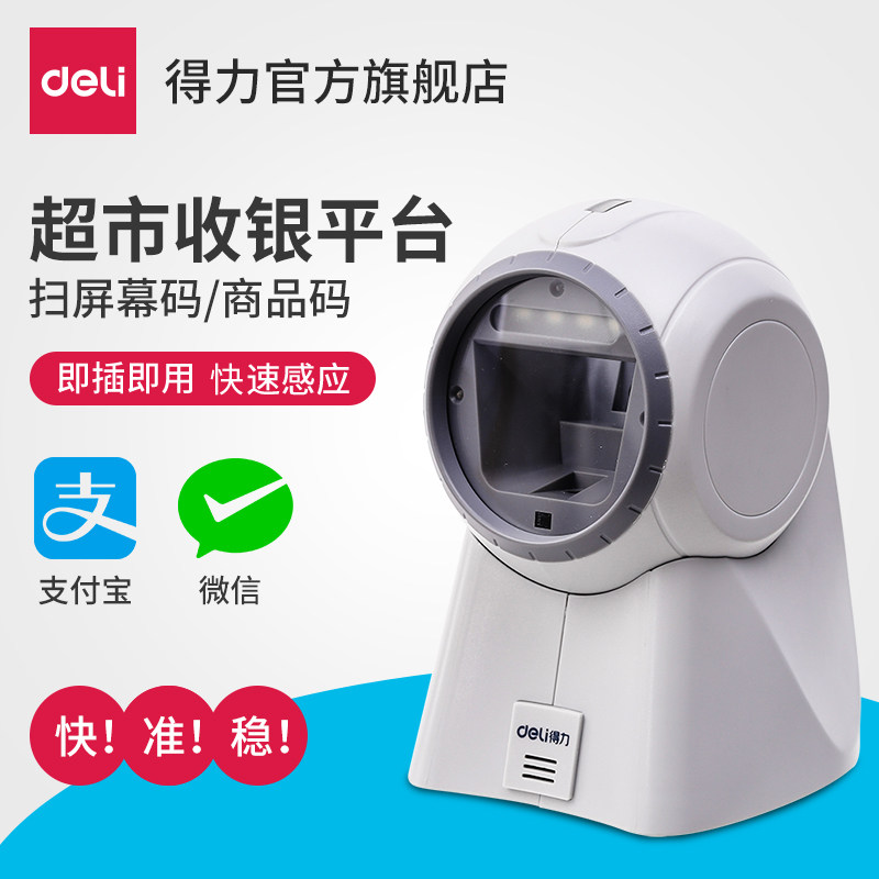 Deli 14960 Сканирующее оружие Сканированный код Gun Supermarket Supermarket Scanner Сканер QR -код сканирование Alipay WeChat квитанция