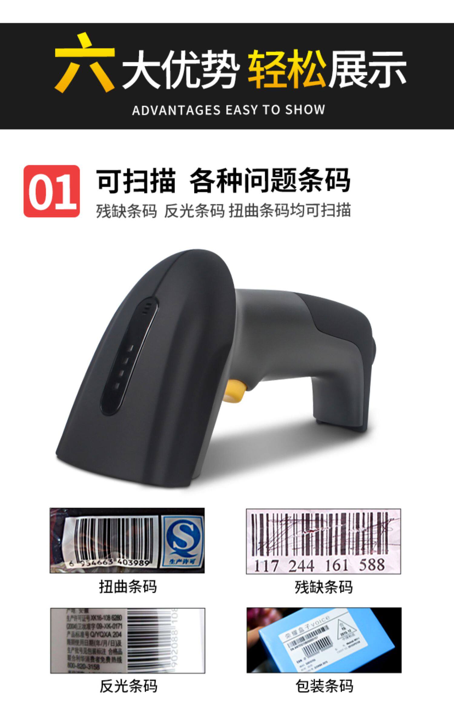 Scan Gun Express Scan Scan Scan Scan Scan Wiredless Wireless Mobile Phone WeChat Alipay Cash Regist Scanner Red Light Bar One QR -код супермаркета вход и выход Express Logistics Scan Machine
