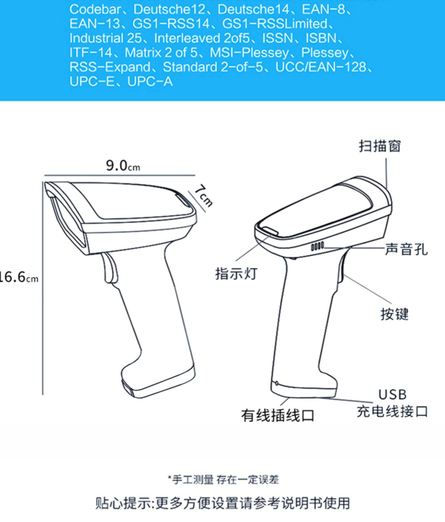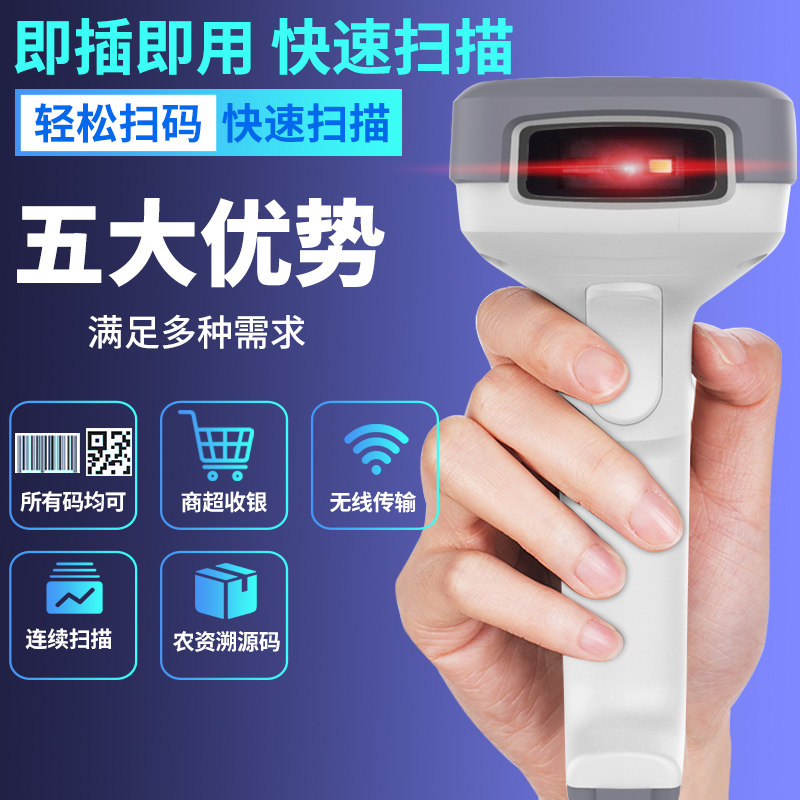 Сканирование орудийного пистолета Экран мобильного телефона Беспроводной красный светильник Сканированный код пистолет Alipay WeChat Scanner Scanner Кабель -обратный двухмерный кодовой портативной кассир в -Aware