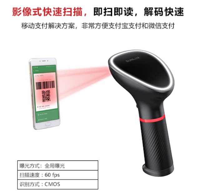 Новый одномерный двумерный сканирующий пистолет Sunlux XL-3610 9600 9610 3600 3620 9620D Розничный кассир Medical Alipay WeChat Spot Spot Spot Spot Spot