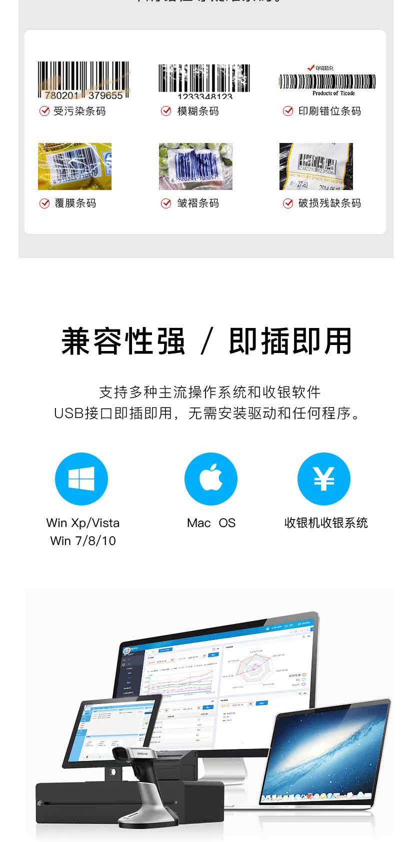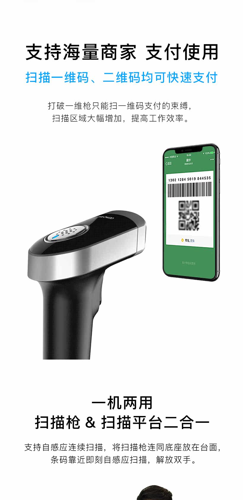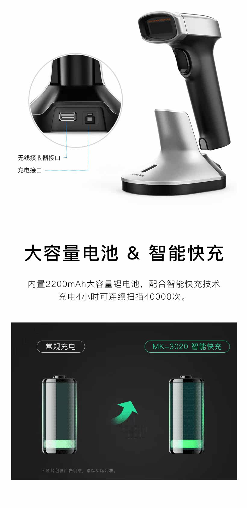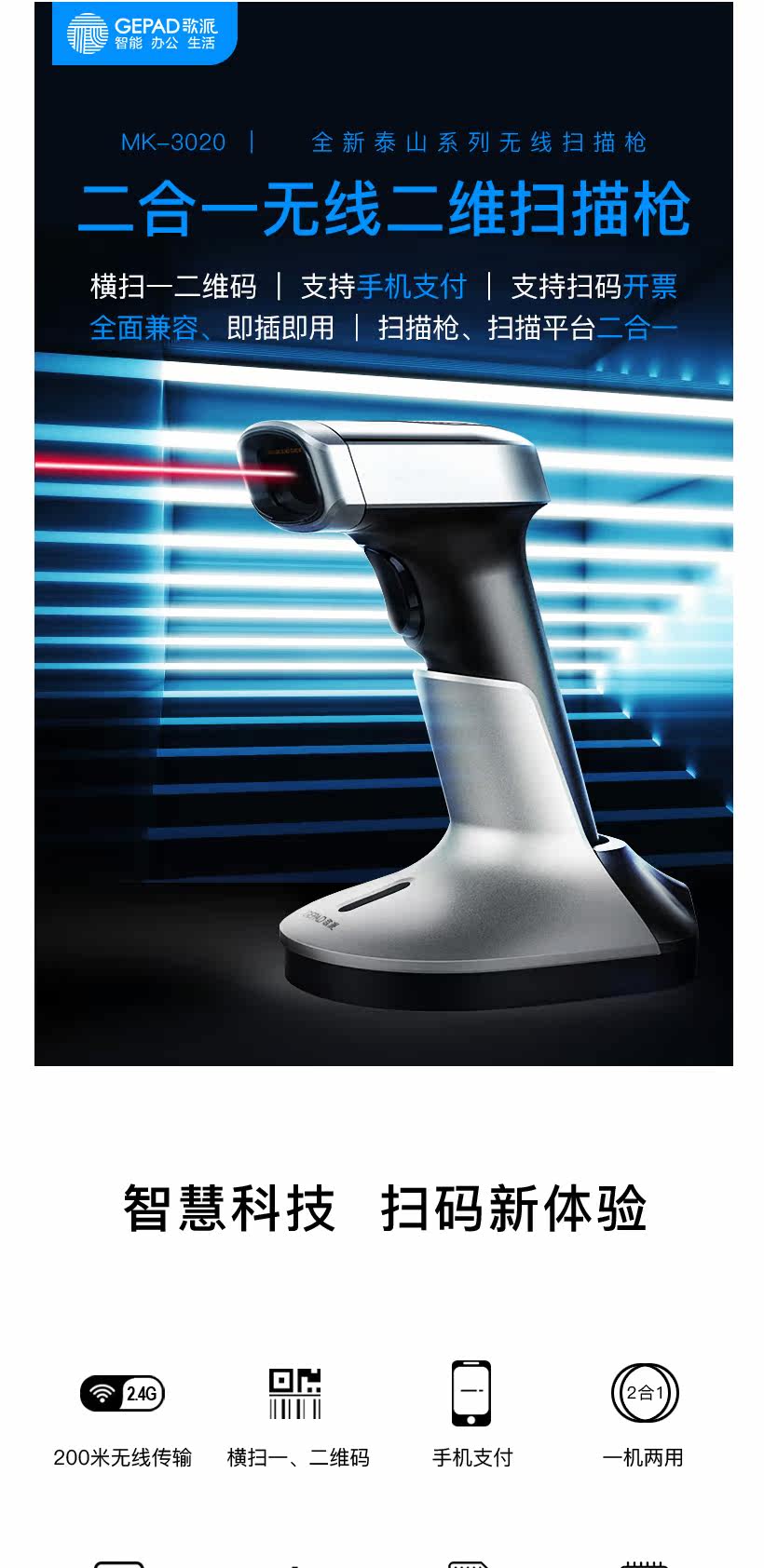 GE PAI MK-3020 Сканирующее оружие беспроводное одномерное код кода Скорость Скорость торговый центр Supermarket Supermarket Silver