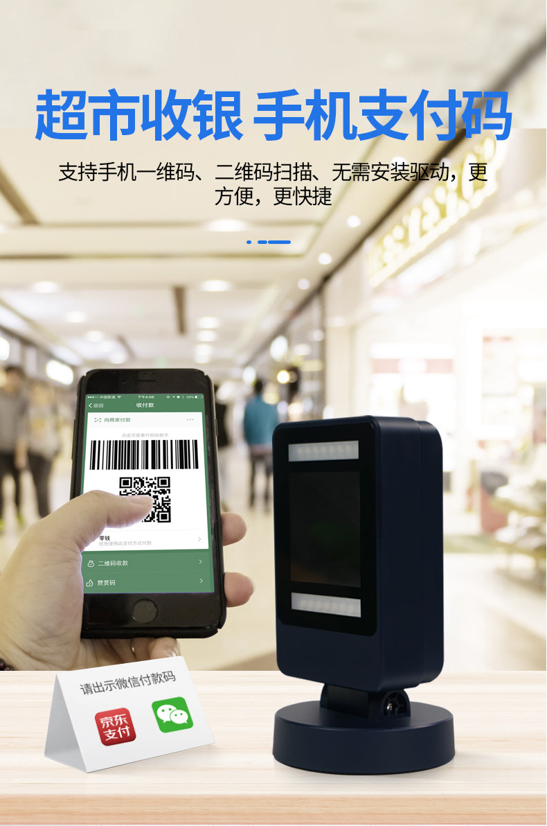 驰腾 T26 Scanner Scanner Supermarket Supermarket Cash Register Платформа сканирования платформы Alipay WeChat Mobile Collection Платежная коробка сельскохозяйственного капитала