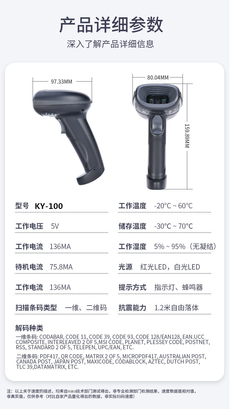 科脉龙 KY-100 штрих-код QR-код мегапиксельный мобильный платежный завод сборочный конвейер промышленный сканер