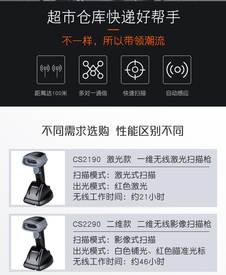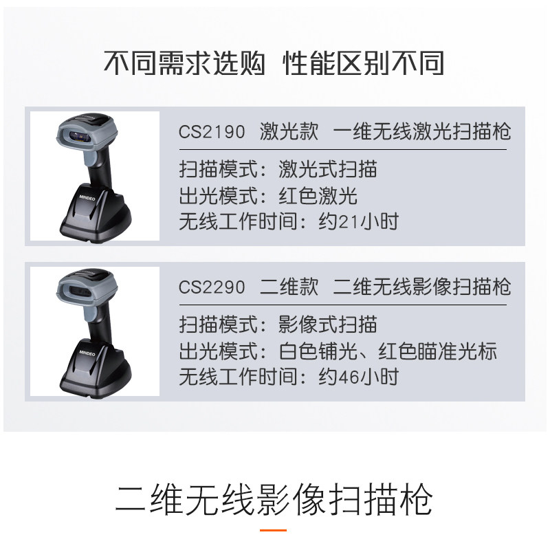 Mindeo Minde CS2190/CS2290 Беспроводной штрих -код Беспроводного штрих -кода быстрое сканирование Gun Express Logistics Supermarket Supermarket Supermare Paymate Кампания Потребляем двухмерный сканированный код Gun Long -Distance Беспроводное сканер.