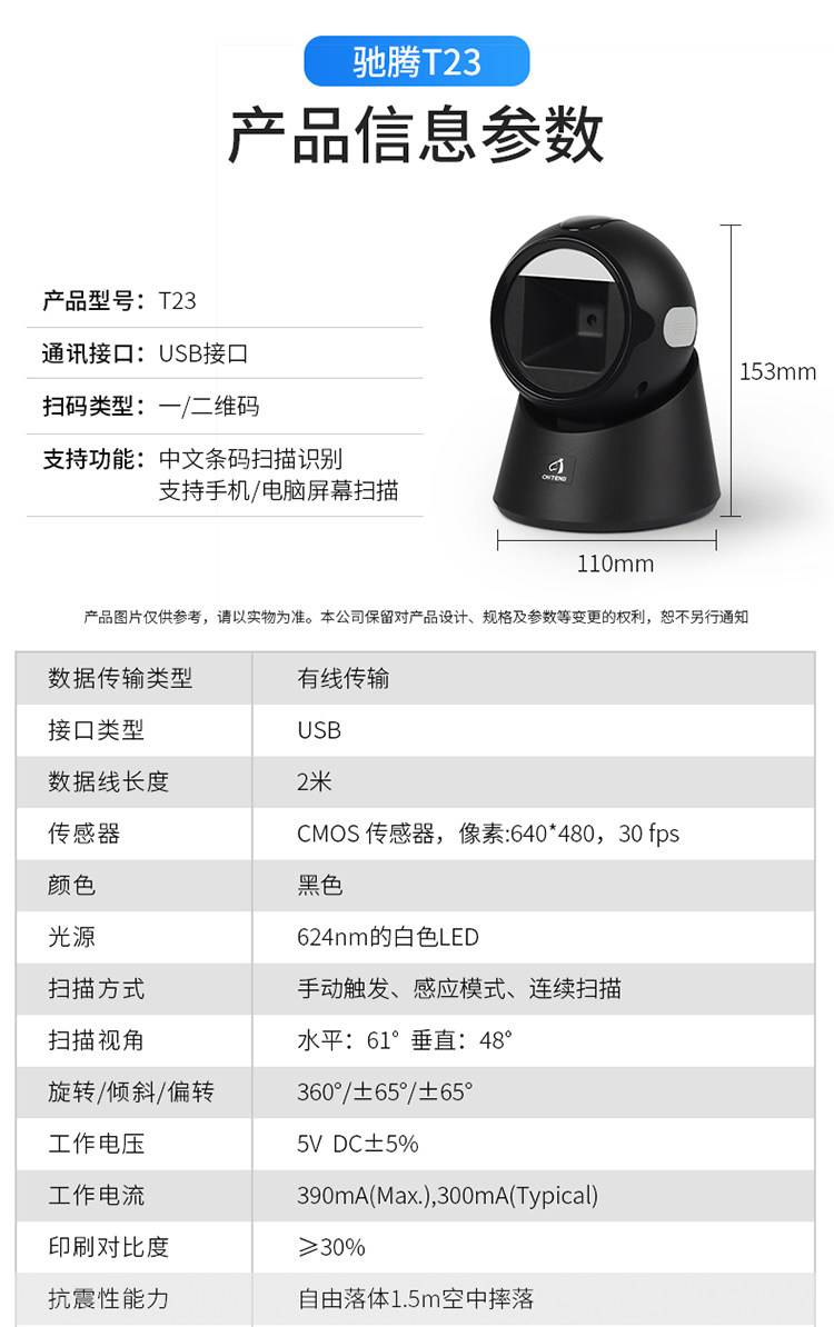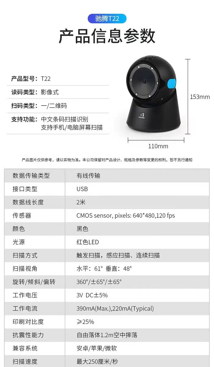 驰腾 T22 сканирование платформы USB One -Dimensional Двумерное сканирование Scaner Scanning Gun Supermarket Mall Scanier сканер кассира