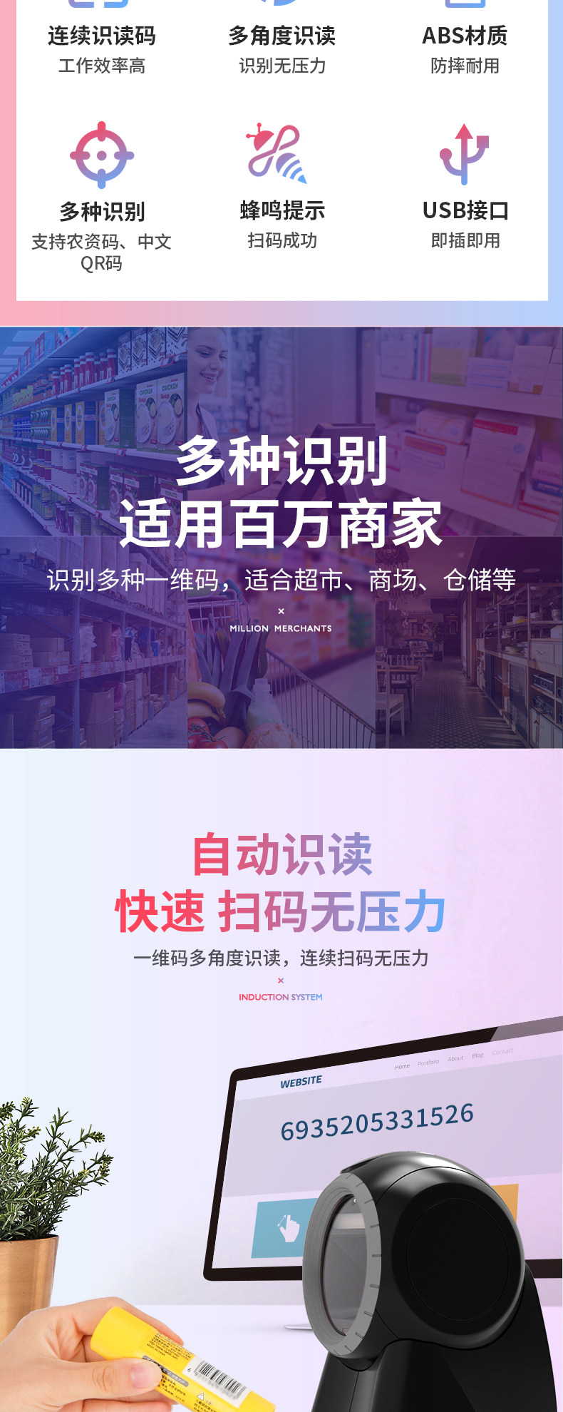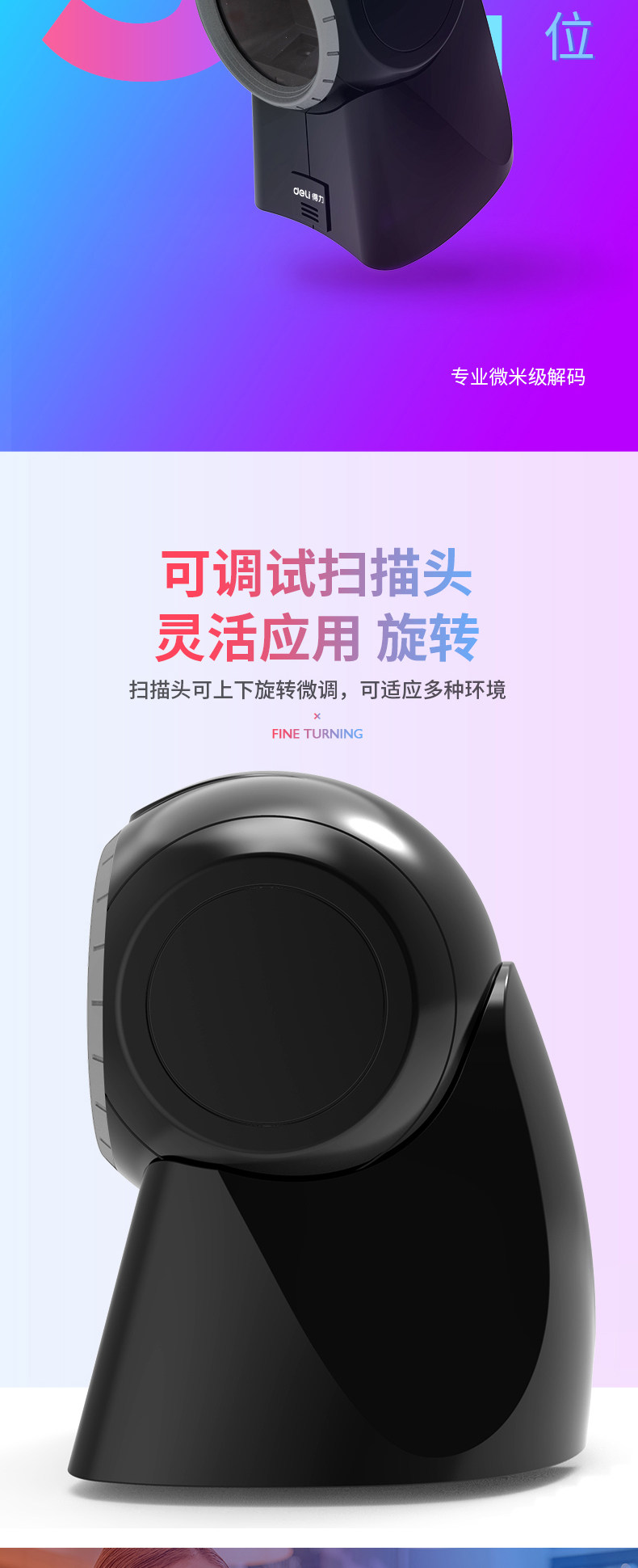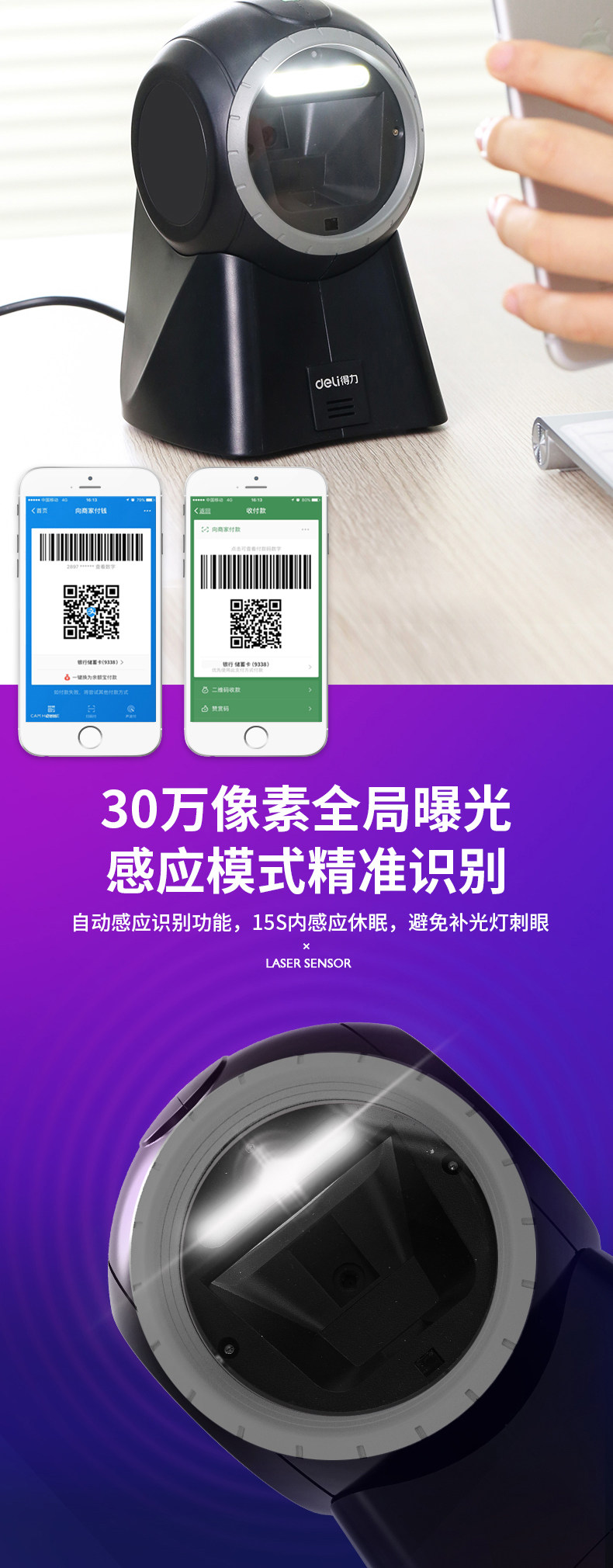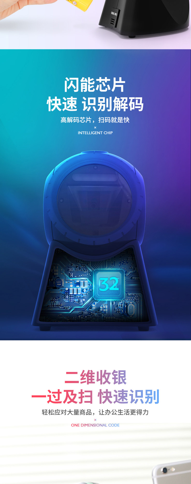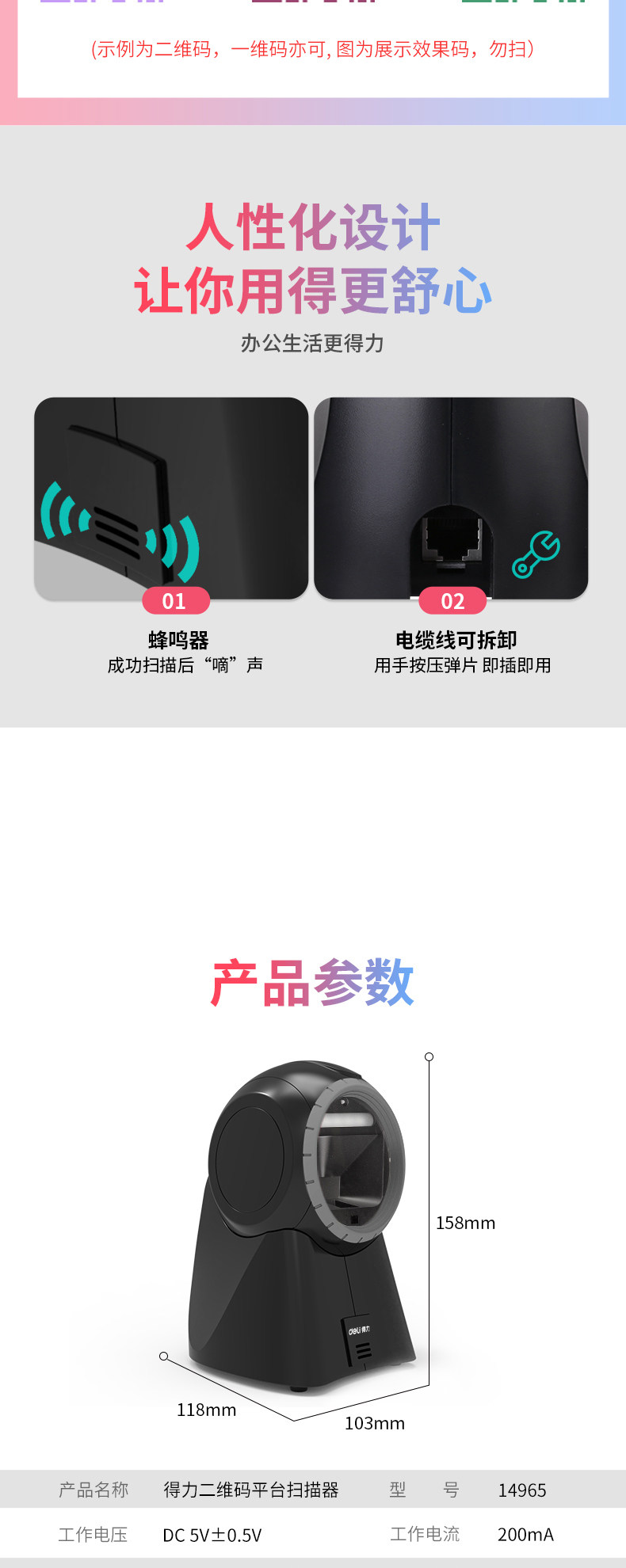 Deli 14965 Код кода мяча One -Demensional Code Штривый код QR -код сканирующий платформу сканирующего пистолет