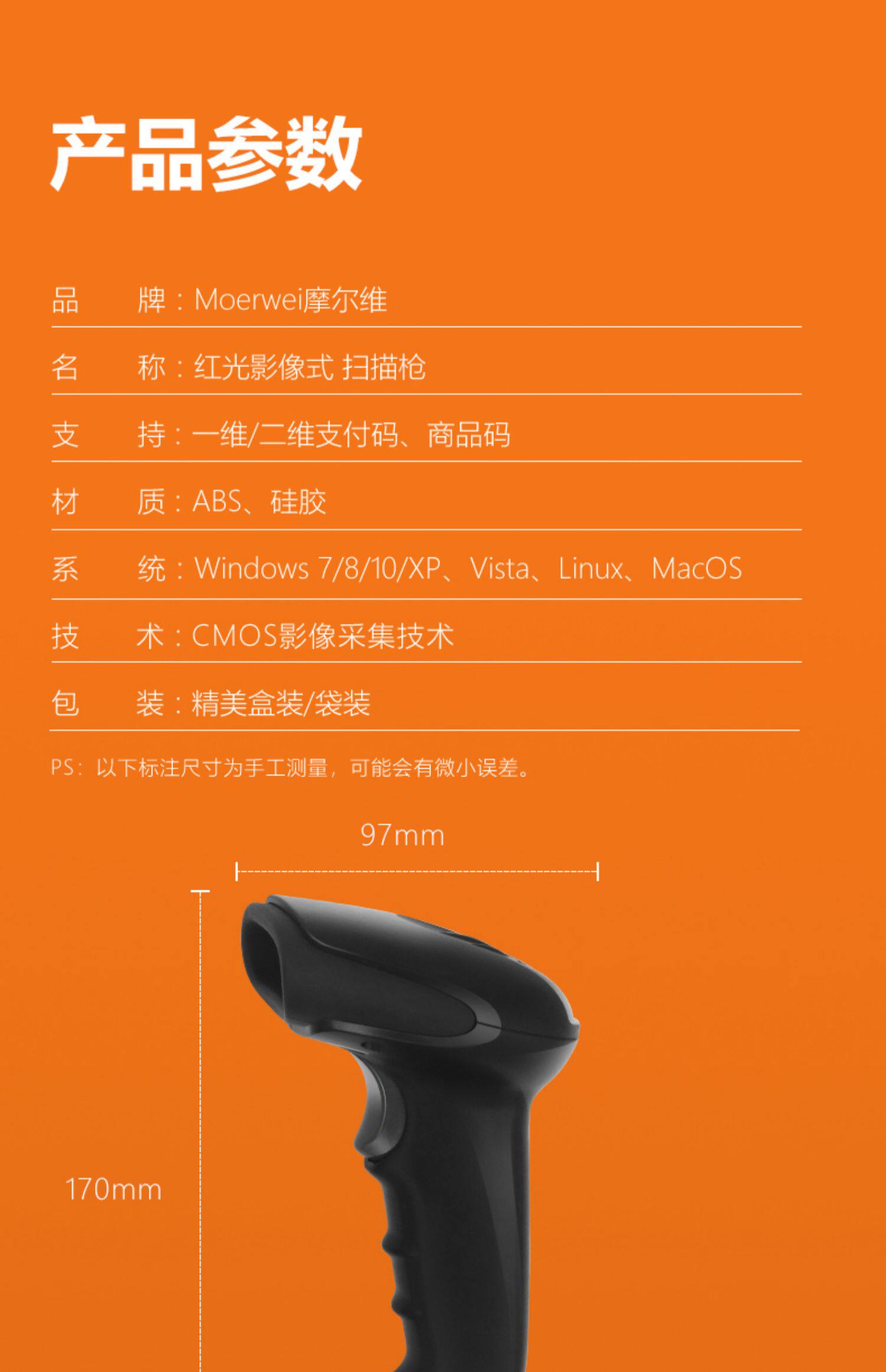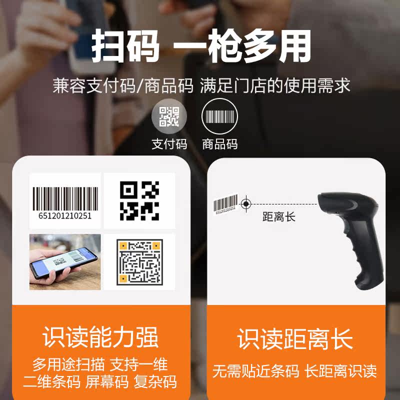 Мур сканированный код Gun Wireless Red Light Courier Courier Single Scanner Supermarket Supermarket Barcode Laser Laser и платеж