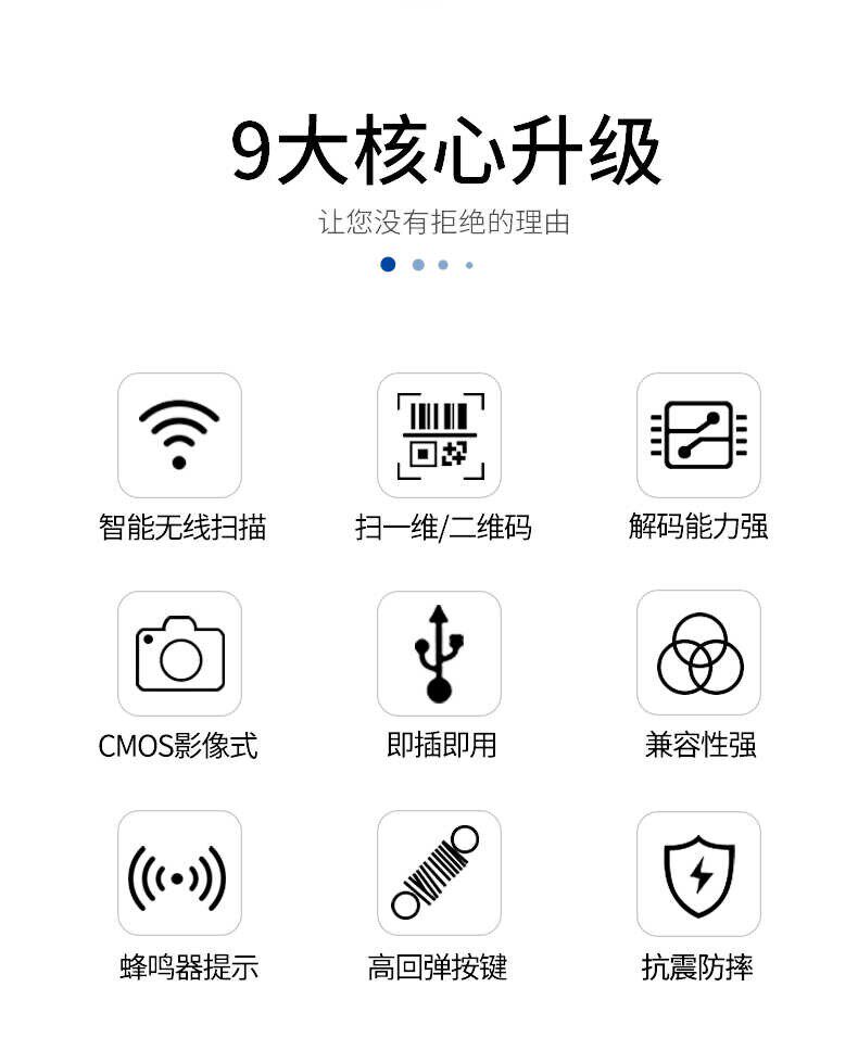 Пистолет для сканирования кода Kemi-9000D с беспроводной связью EP9000 для двумерной визуализации EW9000 для хранения штрих-кодов для кассового аппарата