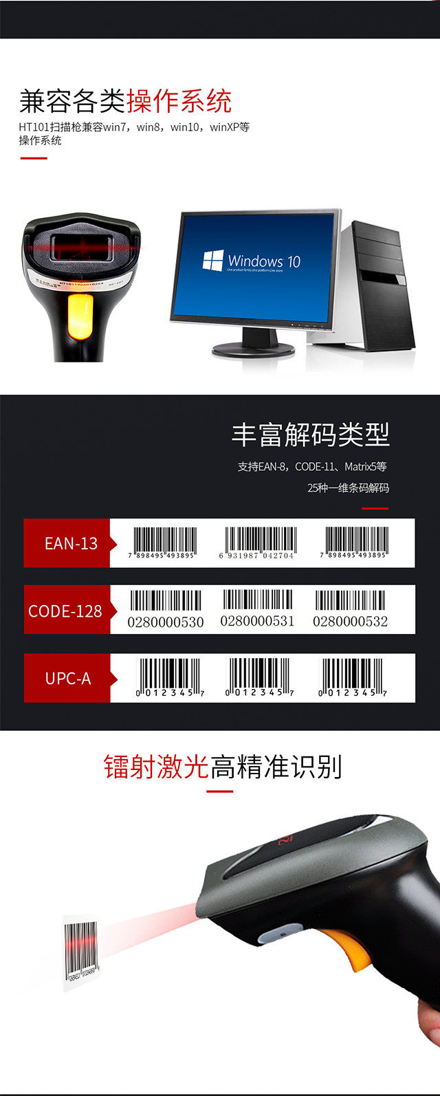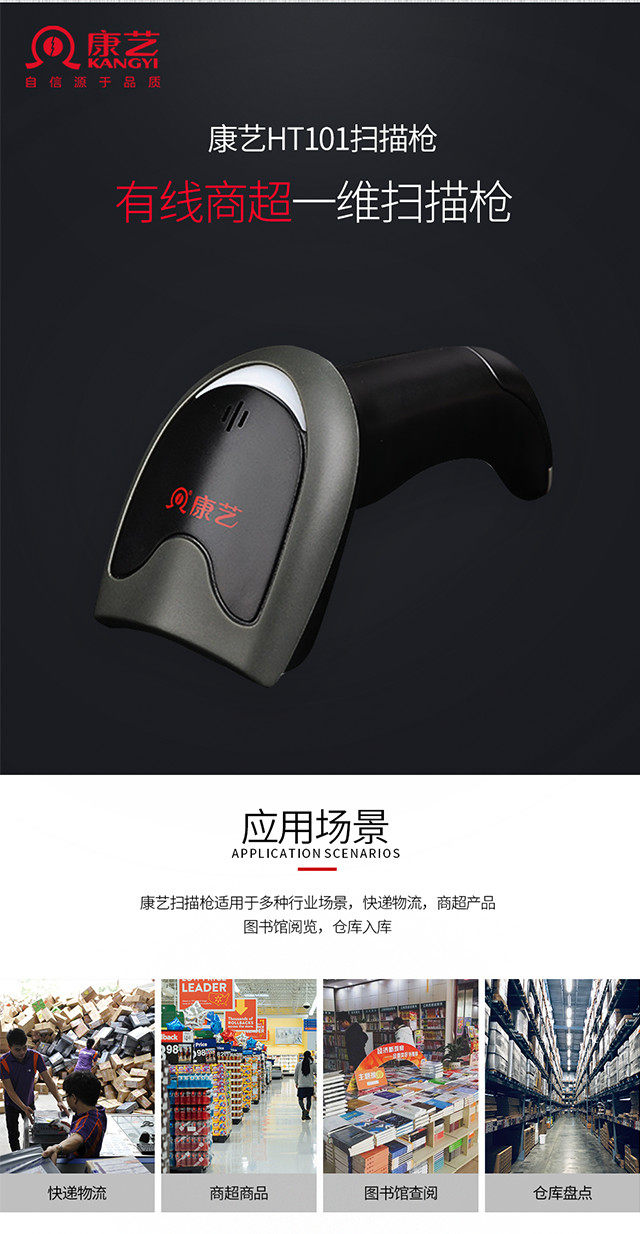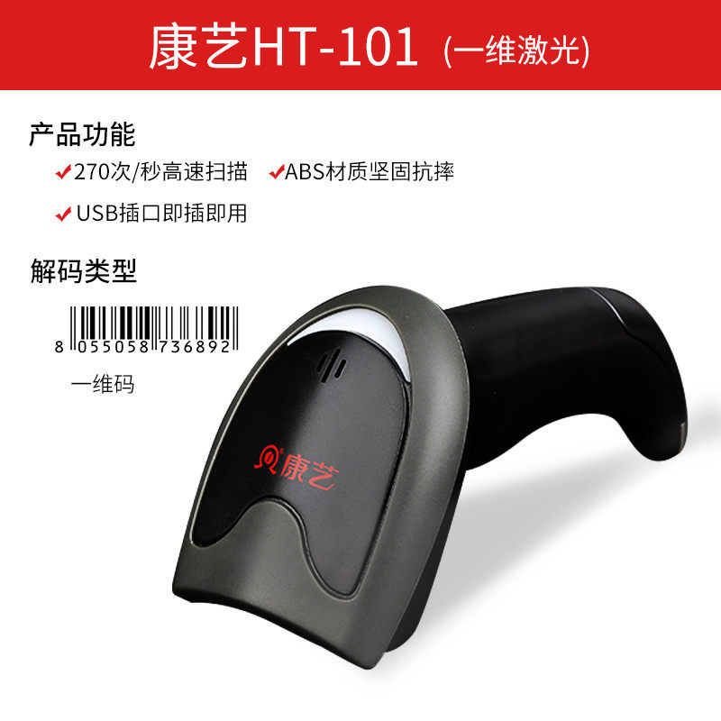 康艺 (Kangiy) HT-101 Одномерный кодекс проводной сканирование в супермаркете торгового центра Сканирование Сканирование Оружейника Медицинская гарантия Медицинский магазин Сканер вакцинации вакцинации