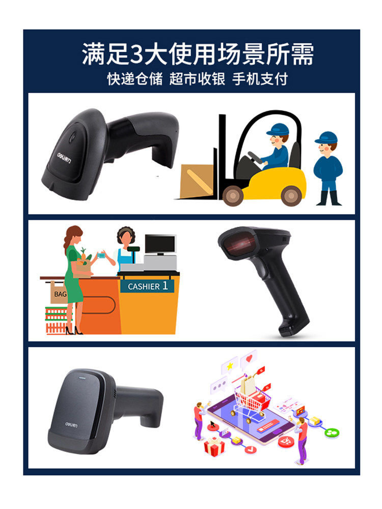 Deli 14880s лазерный штрих -кодовый сканер Express Supermarket Cashier One -Dimensional Code QR -код беспроводной сканирующий пистолет