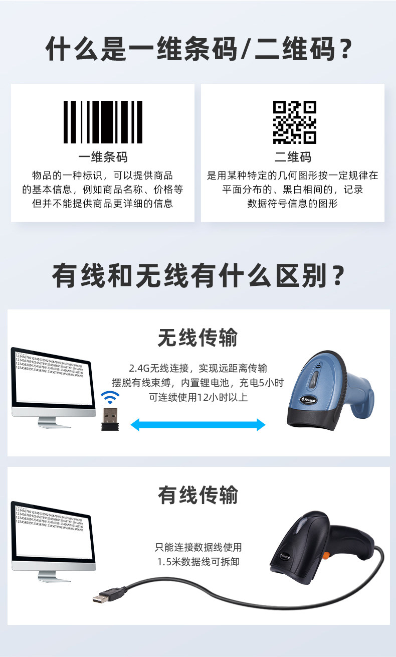 Новый мир OY10/OY20-RF Беспроводной QR-код сканирование Scanning Gun Shopping Mall Hotel Supermarket Scan Cashier Clear Cod