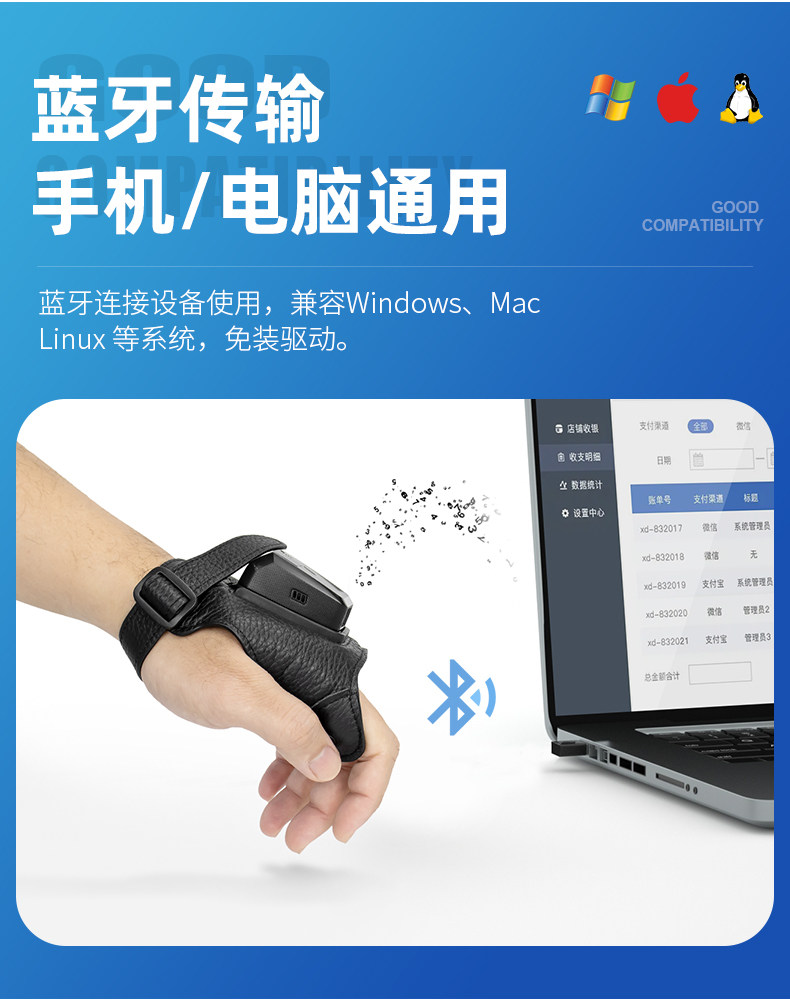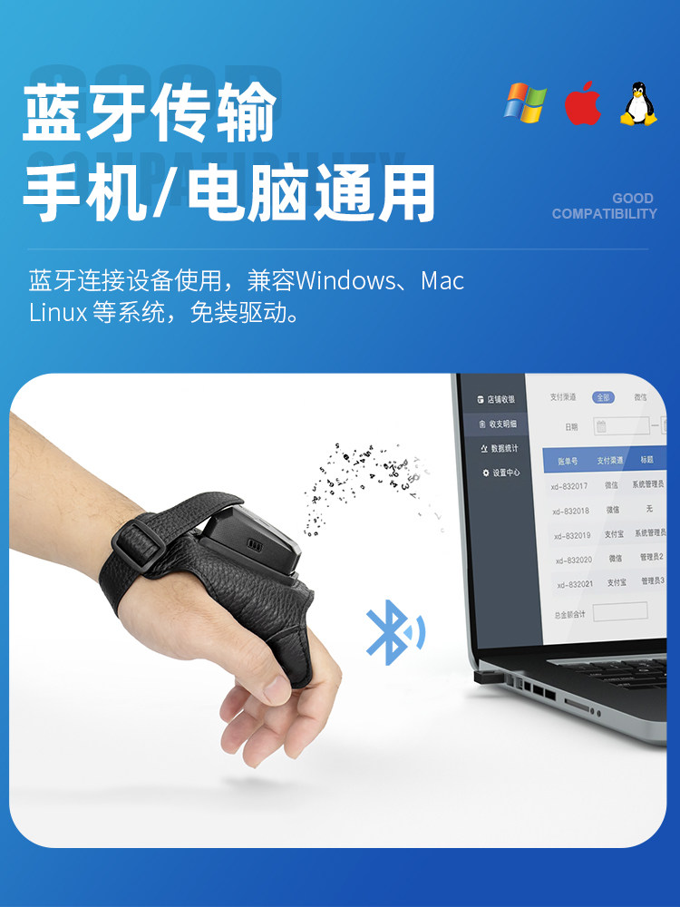 | Цвет: | Беспроводной Bluetooth -носимый одномерный сканирующий пистолет (высокая версия) |