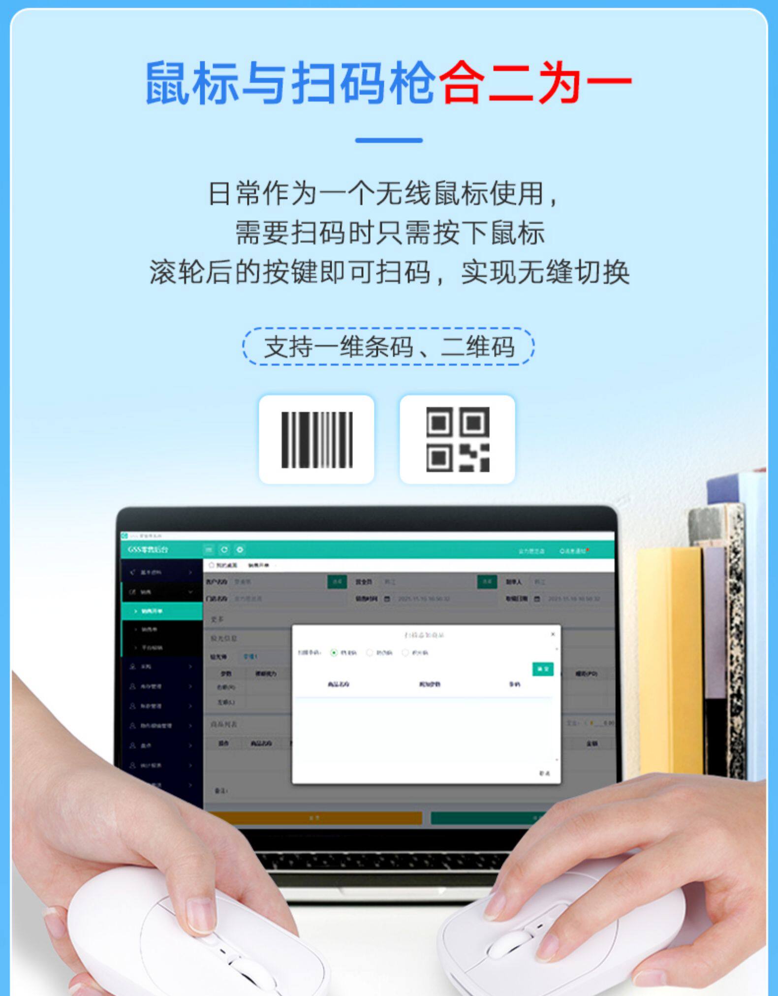 Код беспроводного сканирования мыши сканирующего штрих -кода штрих -кода QR -код кассовый реестр в инвентарях -датабазе. Финансовая одежда модной одежды цепочка бренда UDI Code Scanner M9 Беспроводной сканирующий пистолет