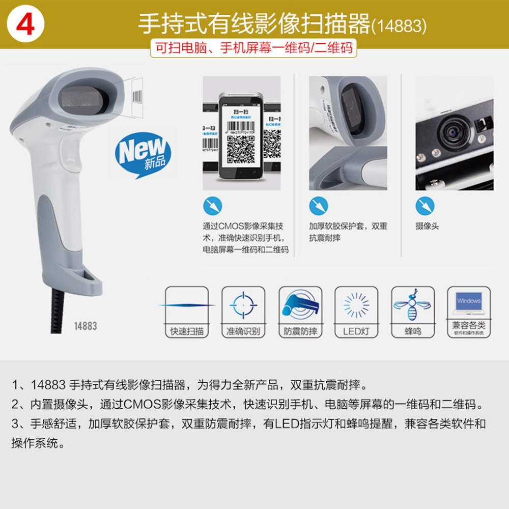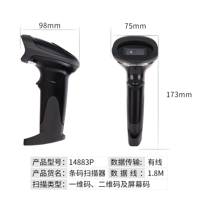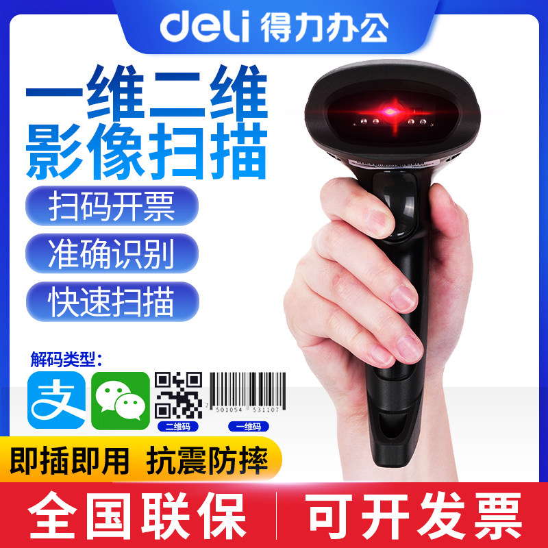 Deli 14883p Один -намеренный QR -код сканирующий оружие Сканирование кода Сканирование кода Сканирование супермаркета кассира кассир