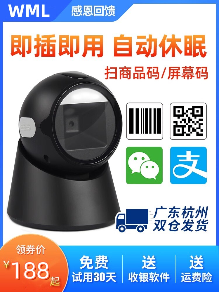 Сканирование кода Сканирующее код сканера сканера сканера супермаркета кассир сканирование платформы Alipay Mobile Pholute Box Платежная коробка больницы социальное обеспечение фармацевтическое магазин кабельный мяч Кабельный мяч