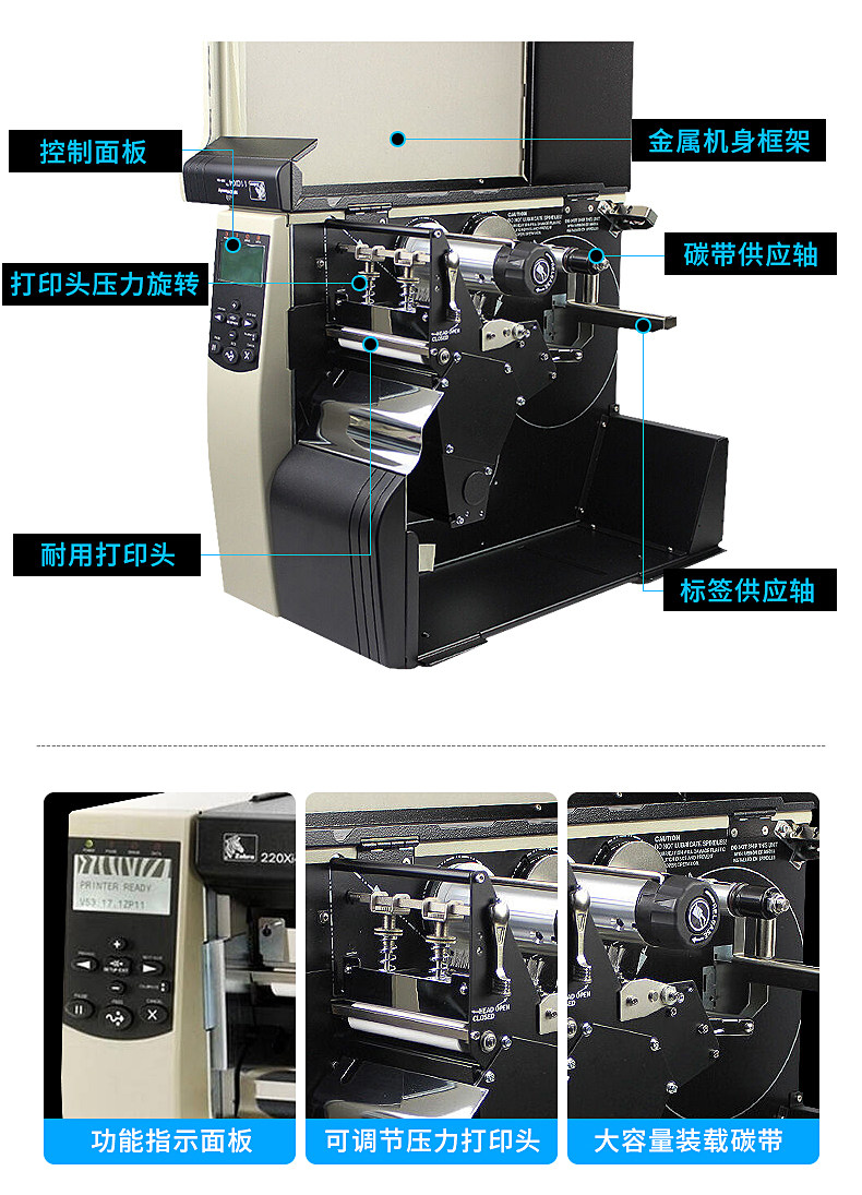 ZEBRA Zebra 220XI4 Промышленный широкоформатный принтер для штрих-кодов и самоклеющихся этикеток с разрешением 300 точек на дюйм