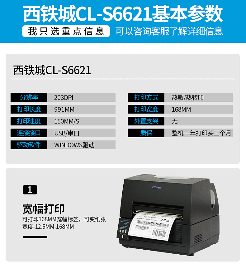 West Rail Rail City CL-S6621C \ 6631 широкий штрих-кодовый принтер