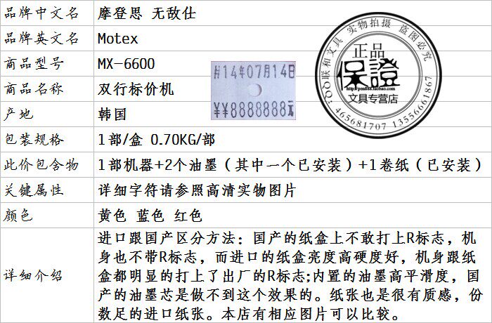 Корейский Motex Modern Mix-6600 Двойной ценовой машины не Gum Метка