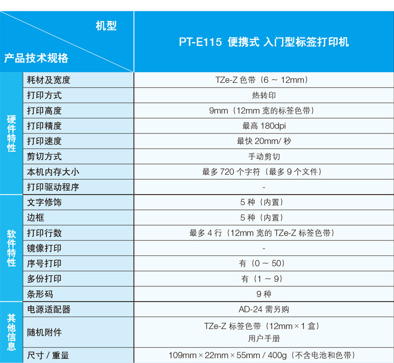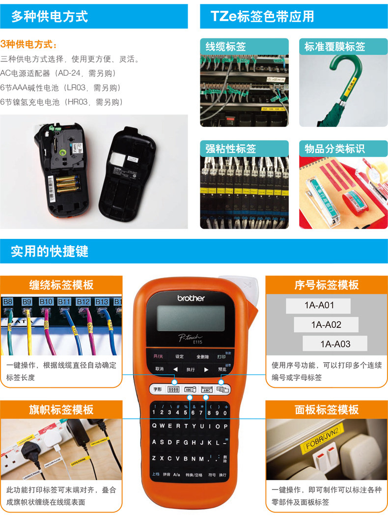 - Пакет PT-E115 (отправьте 3 метку 1 источник питания)