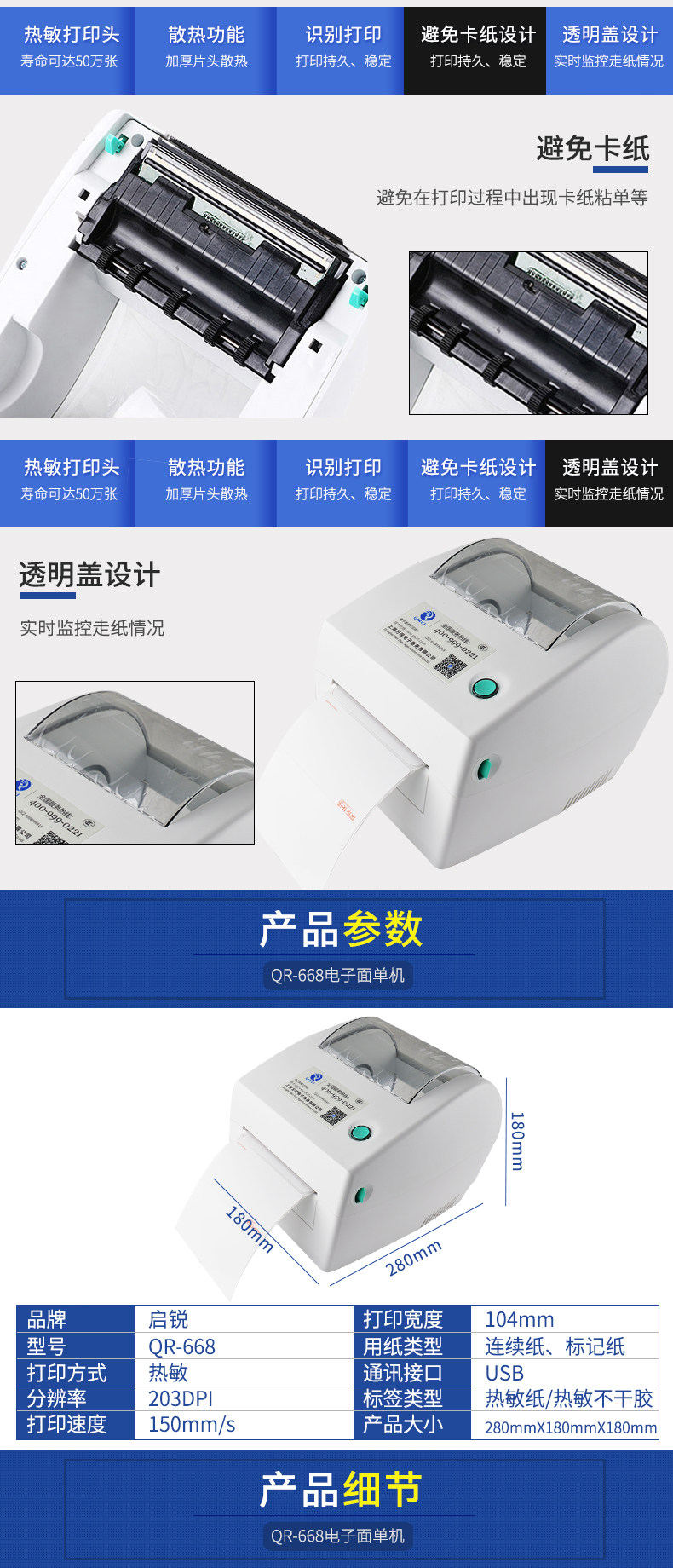 Qi Rui QR-668 Электронный пенистал один принтер Express Single Code Sarcode QR-код emao Logistics Zhongtong tongyun Yunda Tianbaitian SF Express Philosophy