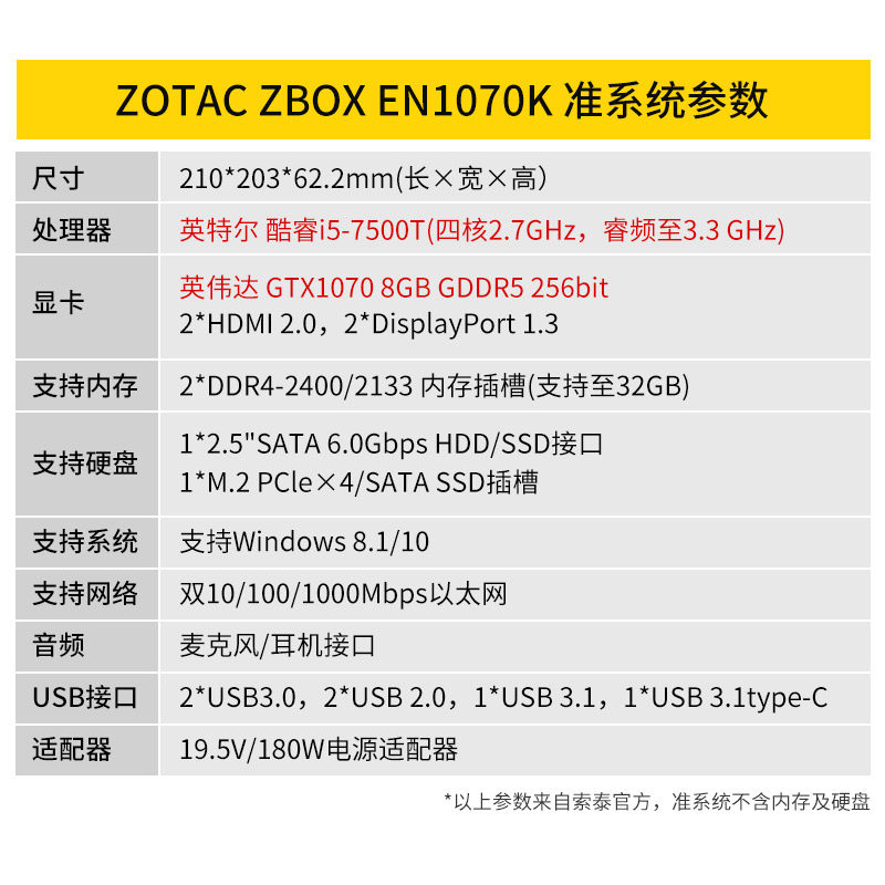 Sotai Zbox EN1070K I5-7500T четырехъядерный GTX1070 Индекс Eder Edge Compusting распознавание изображений VR Виртуальная реальность мини-консоль Mini Game Console Micro терминал компьютер