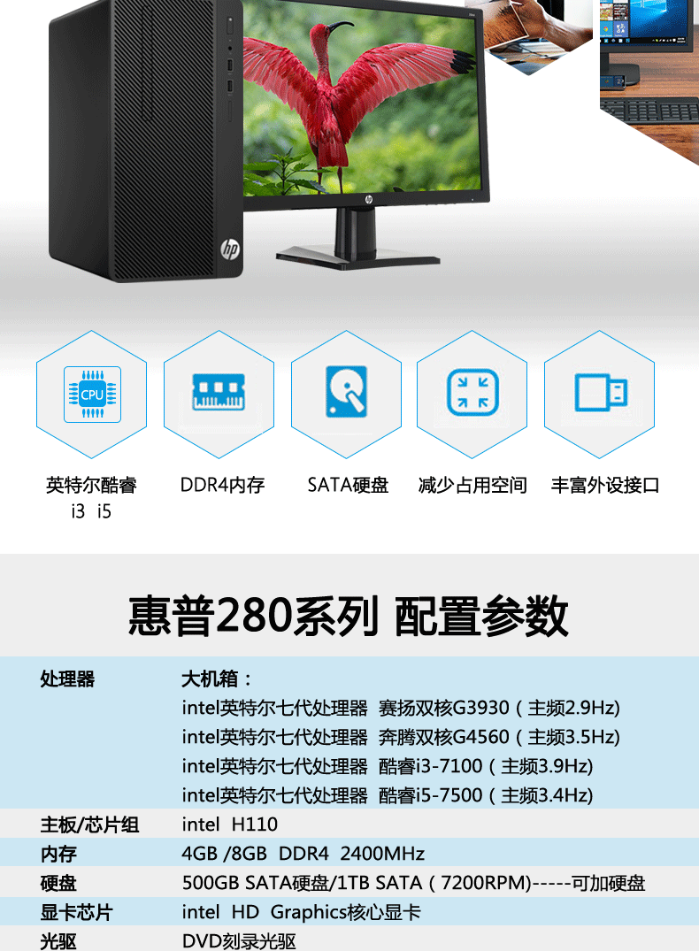 HP HP HP Desktop Computer 280 288 G3 I5 Независимый дисплей Quad -Core -Core -State Commercial Game Financial Small Main Box Полный комплект для установки Win7