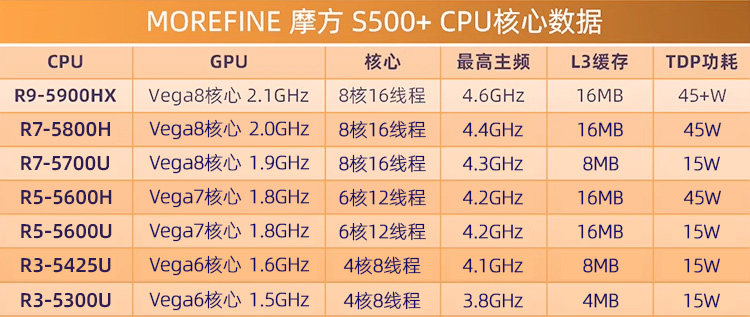 | Тип пакета: | Ryzen R7-5800H Стандартное давление восемь ядра, Ryzen R3-5425U Низкое напряжение Quad Core Core |