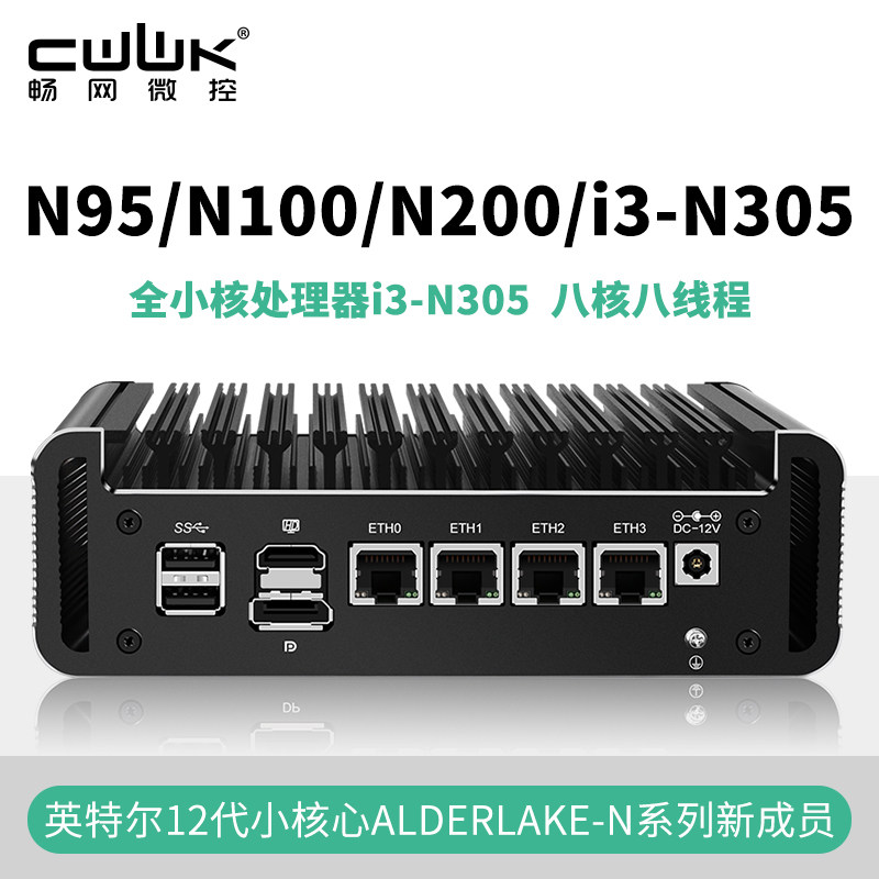 Intel 12 -го поколения N95/N100/N200/N305 Новое All -Small Core Four Network Low Power Mini Computer Host