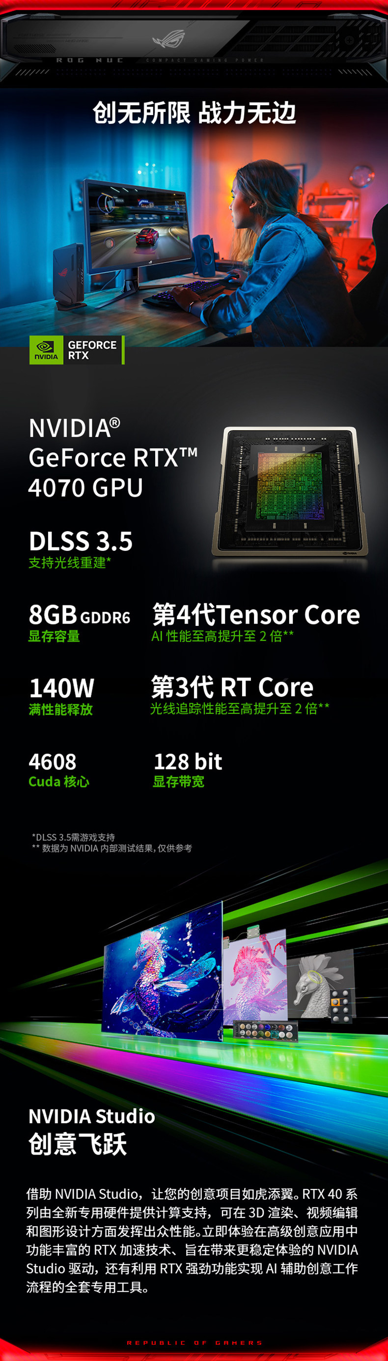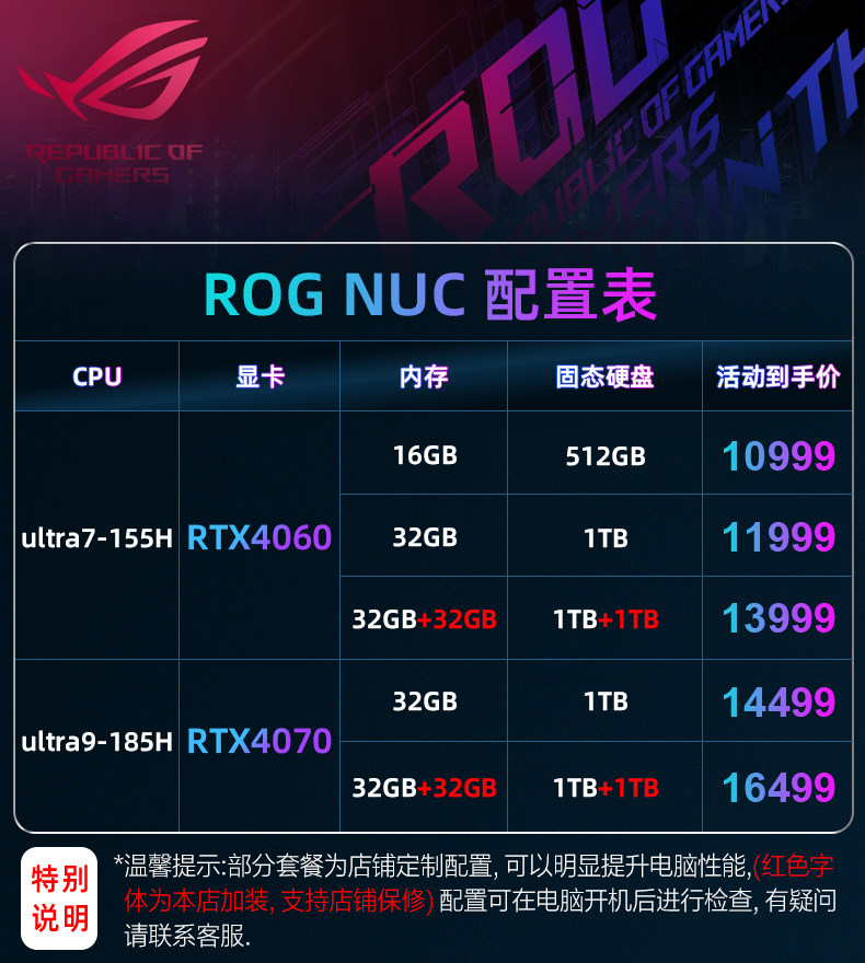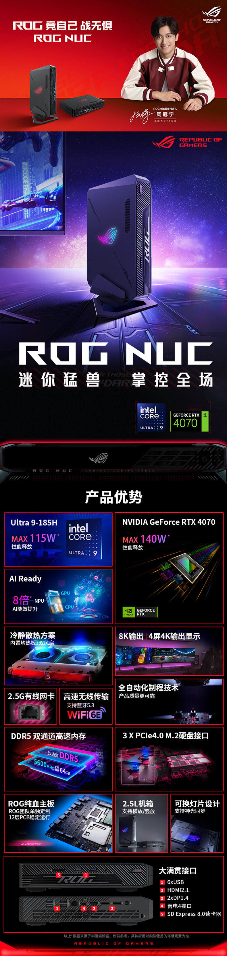 【Играть в черный wukong】 asus rog nuc mini mini host ultra9/rtx4070 pure blood Материнская плата Независимая игровой консоль Mini Desktop E-Sports Computer Player Country Flagship Store