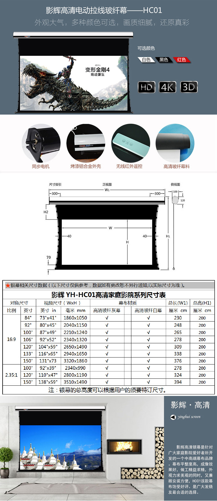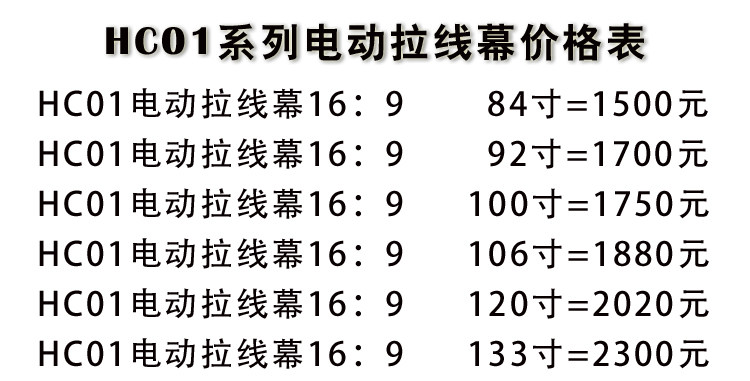 Yinghui HC01 Электрическая линия Crownter Cloth 84 -INCH 92 -INCH 100 -INCH 106 -INCH 120 -INCH 133 -INCH IMPORTED Много 16: 9