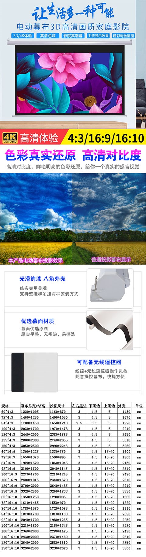 | Цвет: | 120 -INCH CRED COLDE 4: 3, 120 -INCH CROBEAN 16: 9, 100 -INCH CRED Занавес 4: 3, 100 -INCH CRED Занавес 16: 9, 150 -INCH CRED COLDE 4: 3, 150 -INCH CROBEN 16: 9 |