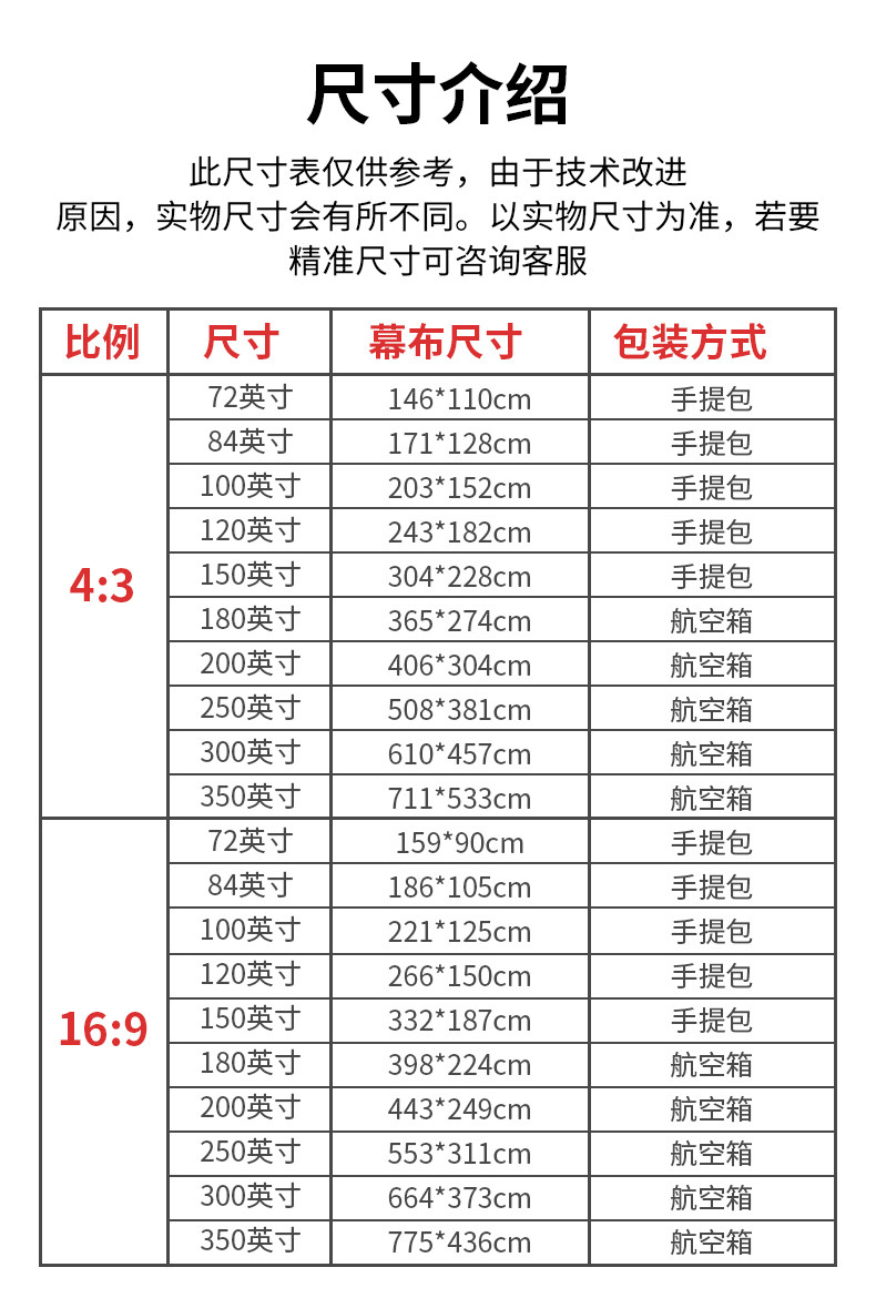 Портативная дорожная трубка, складной экран, 100 дюймов, 150 дюймов, 200 дюймов, 300 дюймов