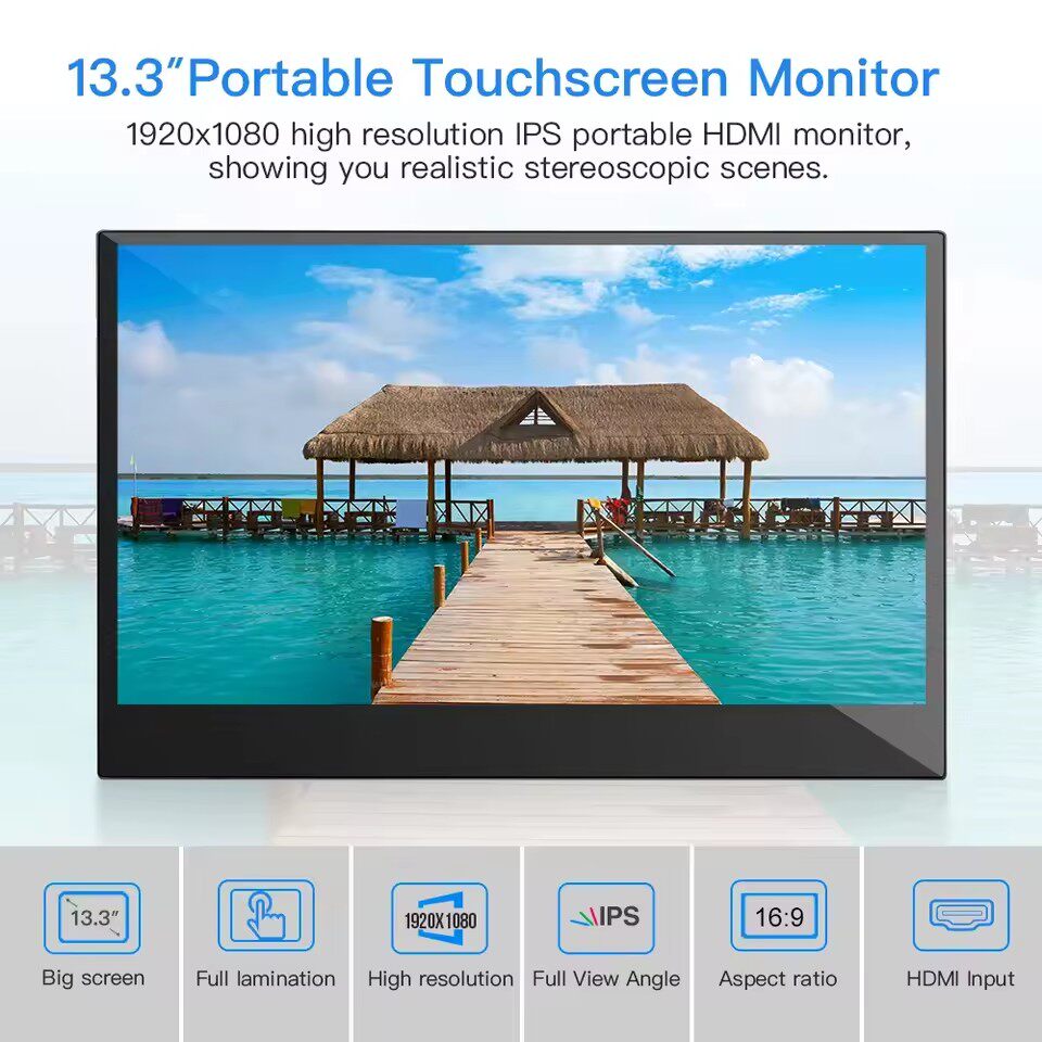 Портативный монитор с сенсорным экраном диагональю 13,3 дюйма имеет компактный и элегантный дизайн для подключения к различным приложениям, таким как ноутбук, PS4, Xbox One, Nintendo Switch, мини-ПК, компьютерный адаптер и беспроводной адаптер дисплея. Это ваш роскошный портативный монитор с сенсорным экраном.