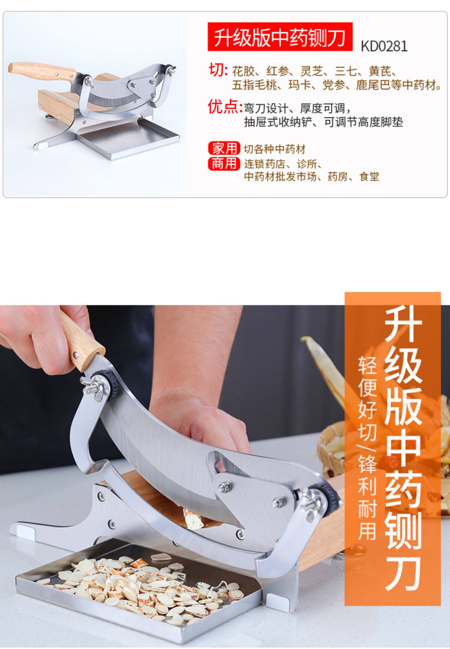 Традиционные китайские ломтики с нарезанными ножом домохозяйственное лекарство для небольшого разреза может быть нарезано и совлажено для использования ручного бархатного рога женьшень женьшень