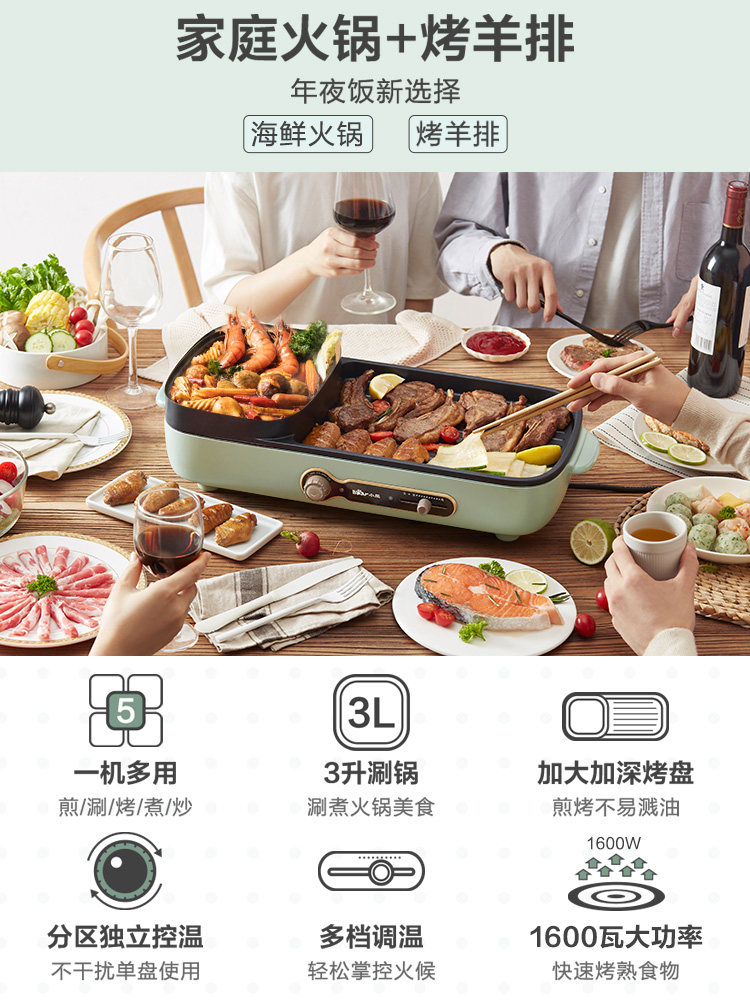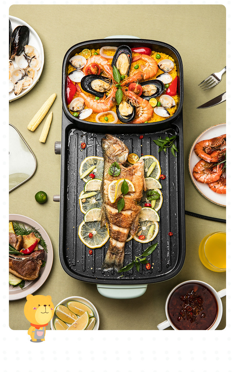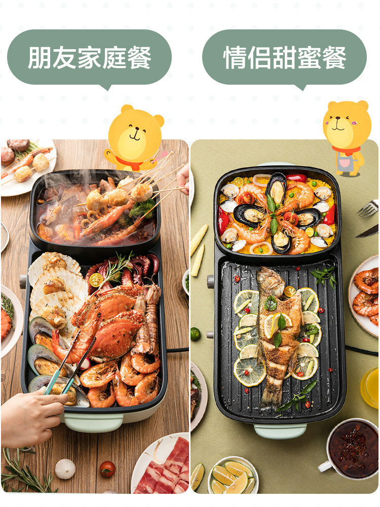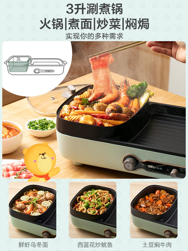 Маленькая медведя Электрическая пекарня мебель многофункциональная бездымная электрические пекари Баркот Barcut Machine Tie Board Hot Pot Барбекю интегрированный горшок