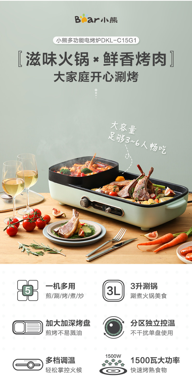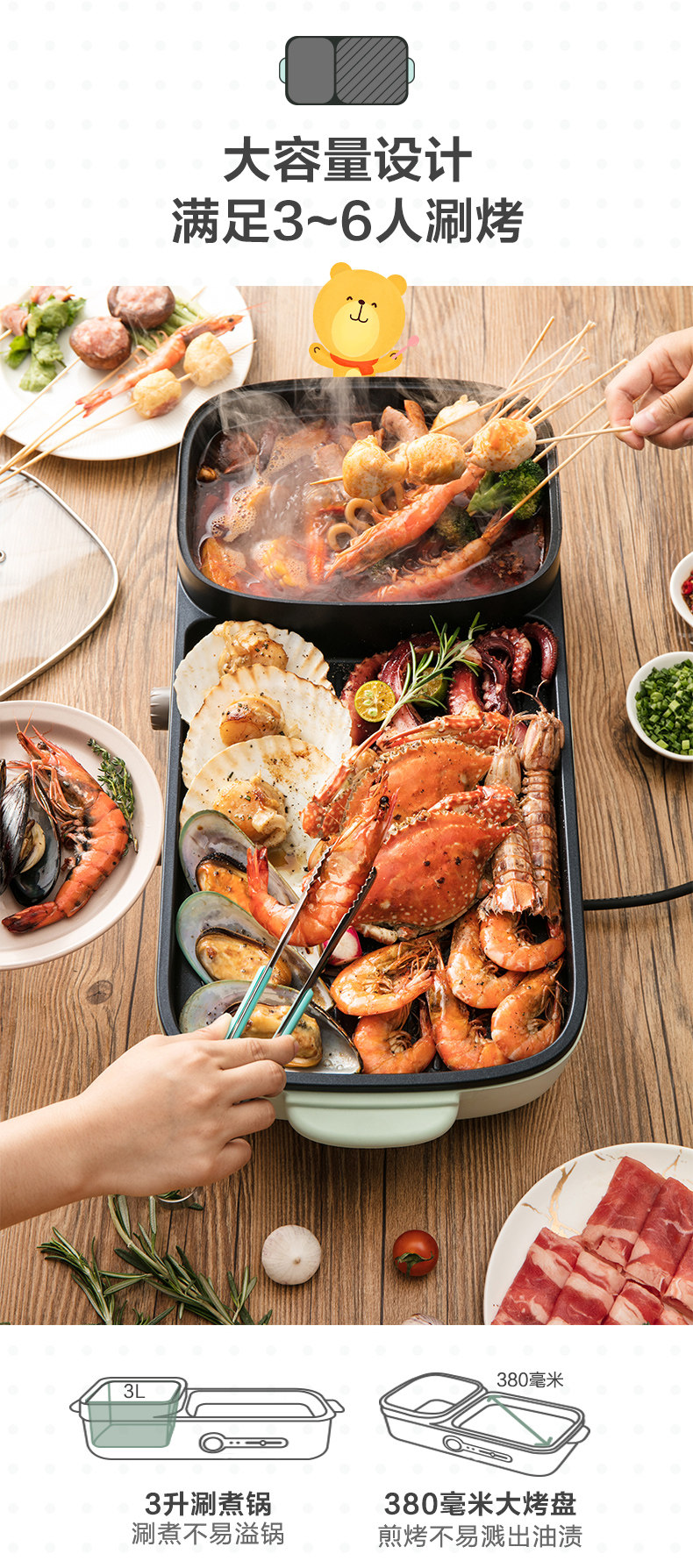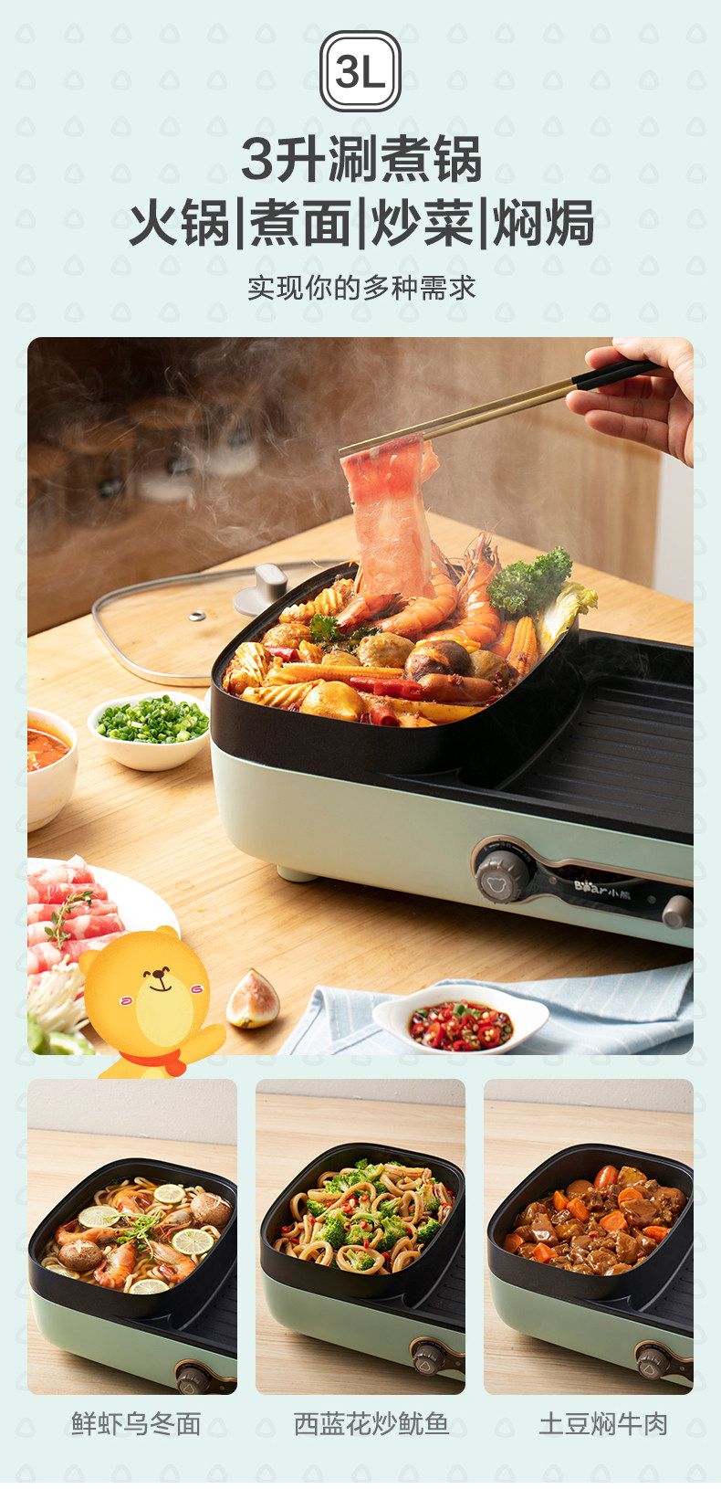 Маленькая медведя Электрическая пекарня мебель многофункциональная бездымная электрические пекари Баркот Barcut Machine Tie Board Hot Pot Барбекю интегрированный горшок