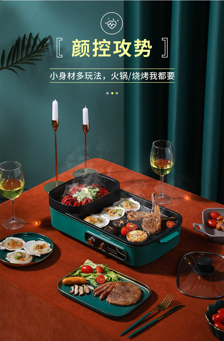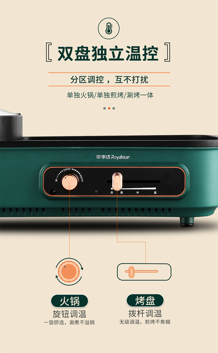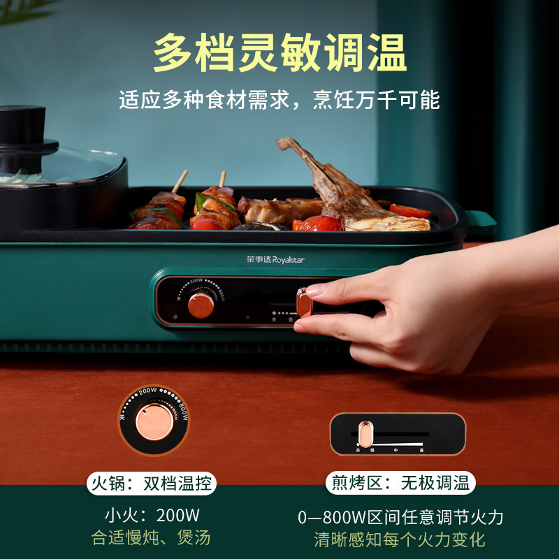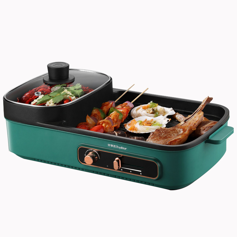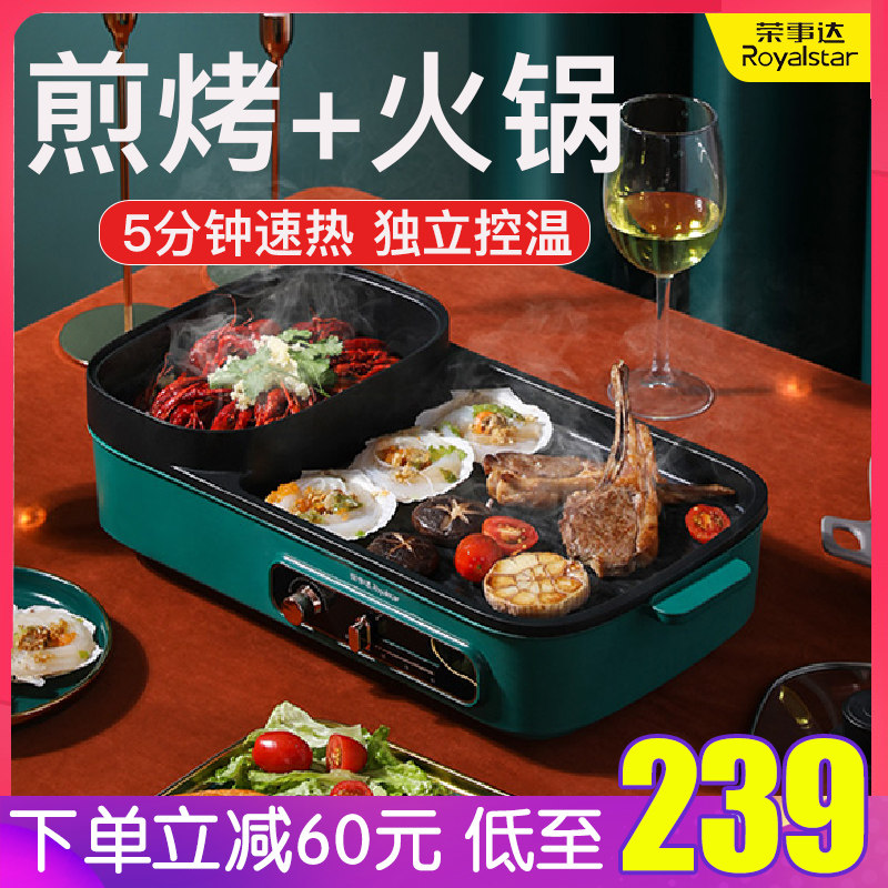 [Taobao] Электрический гриль Royalstar, бытовая бездымная плита для барбекю, многофункциональная гриля Шабу-сябу Шабу-Шабу горшок два в одном